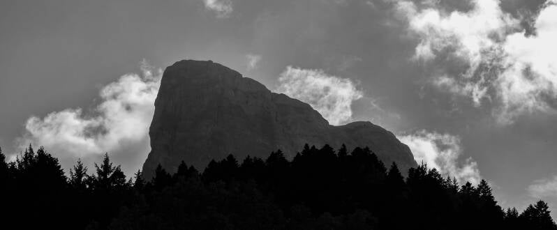 Du haut de ses 2087m, le Mont Aiguille n'est qu'un sommet de seconde zone par rapport aux géants alpins, et pourtant, sa symbolique et son histoire surpassent ostensiblement les mythes et les anecdotes concernant d'autres parties alpines. Son relief n'y est pas étranger : un socle pyramidal où trône un immense rocher cubique permet d'imposer sa singularité non seulement dans les Préalpes françaises mais également dans l'intégralité de l'arc alpin.