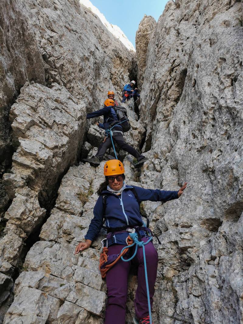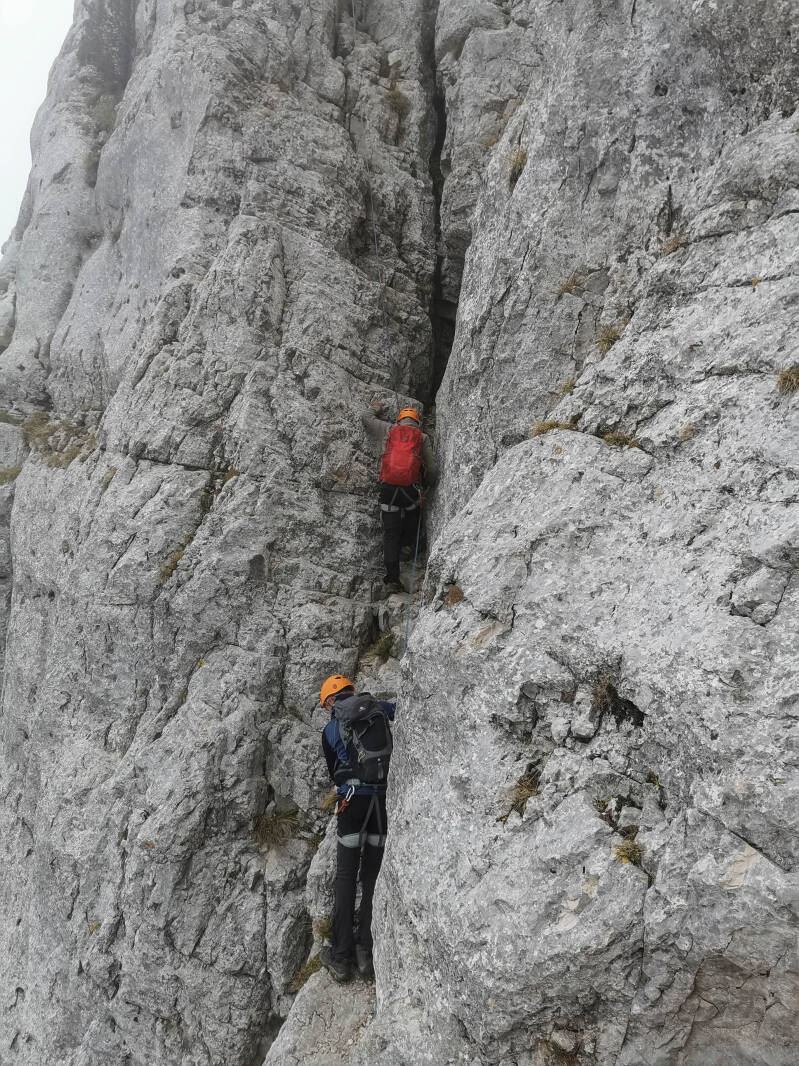 On atteint finalement le dernier goulet avant le plateau sommital. Une succession de ressauts rocheux qui nécessiteront de s'appuyer de part et d'autre de la paroi.