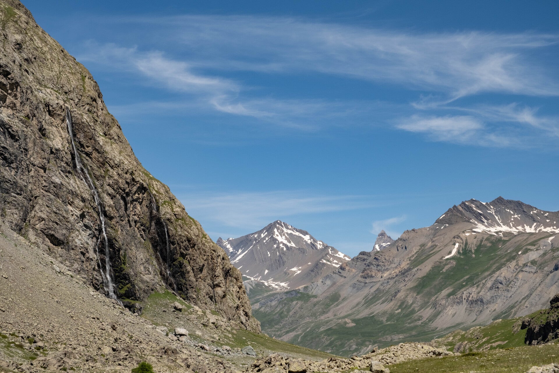 Pendant notre traversée, plusieurs cascades déversent l'eau de fonte sur le plateau. Les mêmes cascades qui côtoient l'Aiguille du Goléon, l'Aiguille méridionale d'Arves et le Pic des Trois Évêchés.
