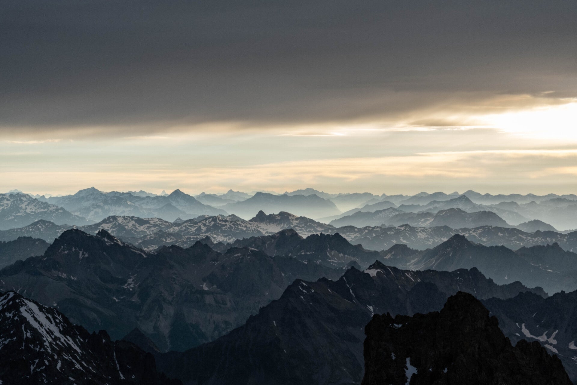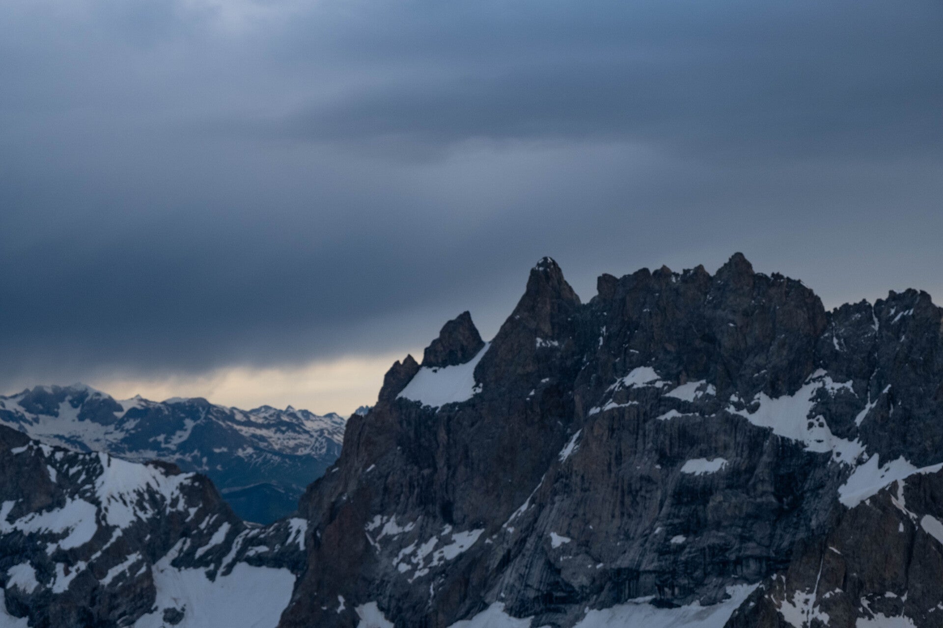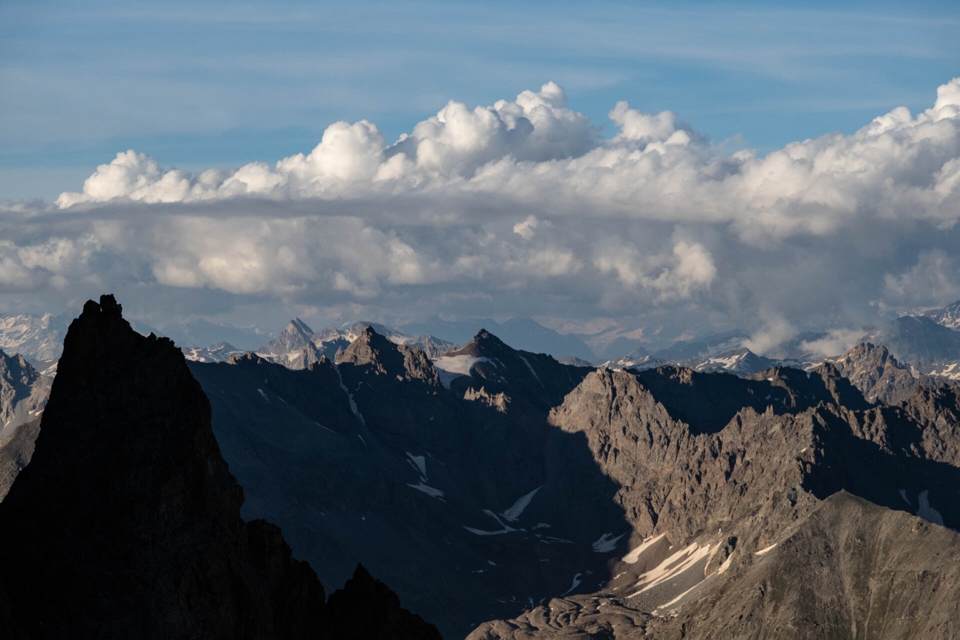 L'instabilité se met en place sur les plus hautes cimes, à l'instar de la Barre des Ecrins qui voit un léger lenticulaire se former au dessus de son sommet.