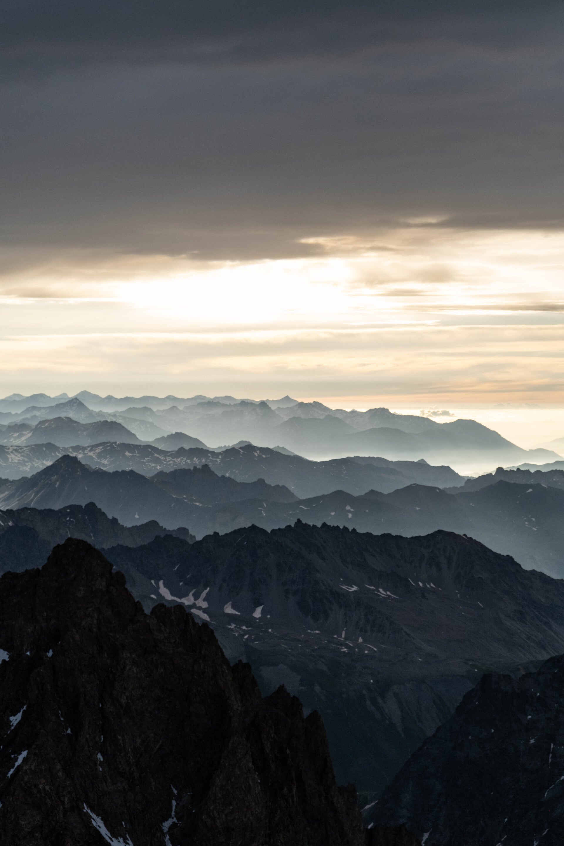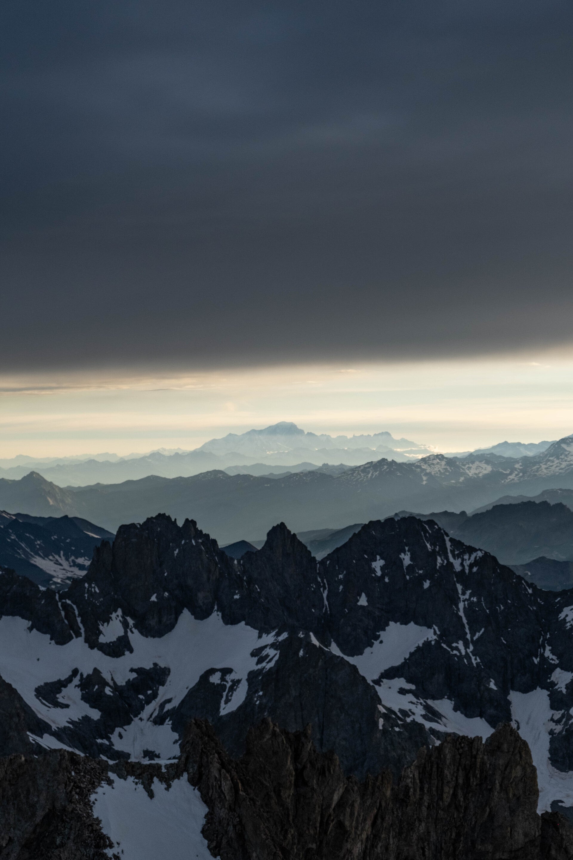 Au delà des Ecrins, ce sont les Cerces et le Mont Thabor qui profitent des dernières lueurs. La Maurienne et les Alpes italiennes se contenteront d'un ciel menaçant en cette fin de journée.