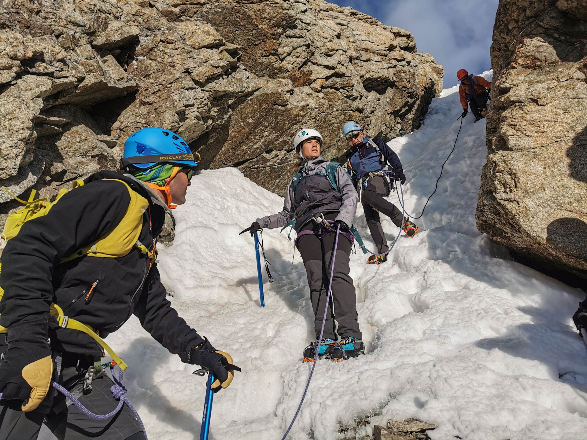 Cependant, la course d'alpinisme, notamment lorsqu'elle a pour but d'initier des débutants, doit se faire dans des conditions les plus optimales possibles. Notre ascension de la Grande Ruine a ainsi été décalée une première fois en raison des risques d'orage et du manque de regel la nuit. En effet, personne n'a envie de se retrouver sur une arête vertigineuse avec des vents violents alliés à de la neige et des éclairs manquant de peu de foudroyer quiconque se trouverait au sommet. De plus, pour permettre une stabilisation du manteau neigeux et du glacier, un regel la nuit est préférable. La course se réalisant très tôt le matin, cela permet une meilleure accroche des crampons, un risque d'avalanche minime et des chutes de pierres moins fréquentes. Mais là encore, le risque zéro n'existe pas et les accidents peuvent arriver à n'importe qui. Pour réduire au maximum les risques et s'initier plus facilement à cette pratique, nous serons encadrés par un guide de haute montagne. Il s'assurera de notre sécurité et nous expliquera la marche à suivre avant et pendant l'expérience.
