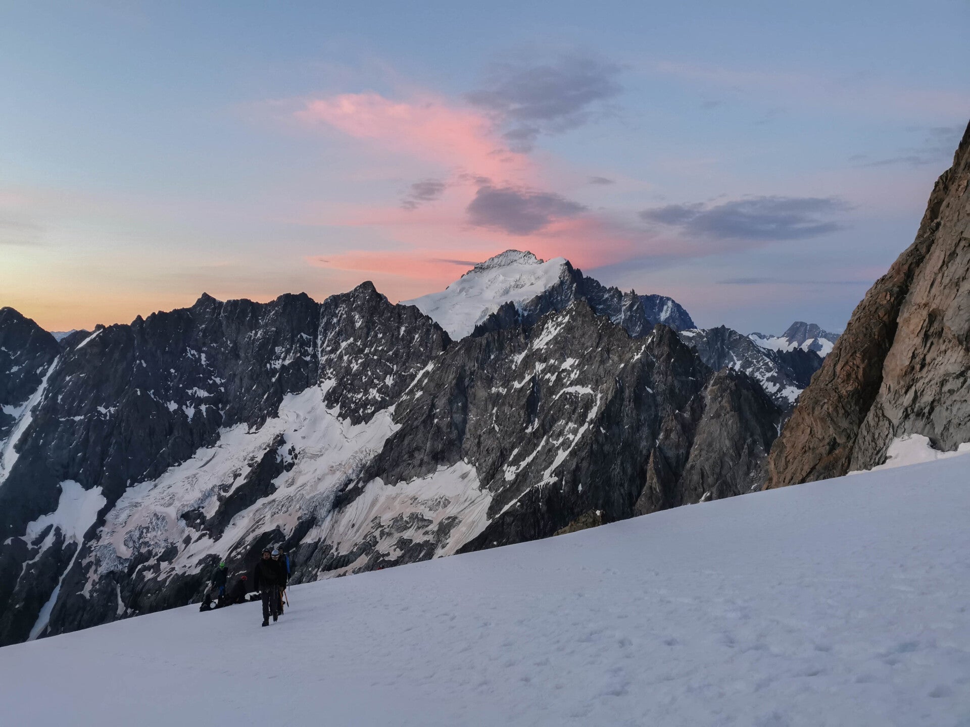 Finalement, la Barre des Ecrins rosie légèrement. Il est temps pour nous d'entamer une courte nuit.