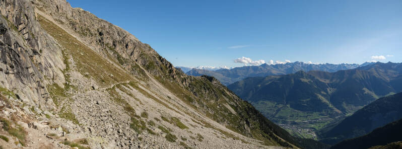 La montée de la veille vers le Refuge des Grands nous a bien avancé pour la sixième étape de ce Tour du Mont Blanc. On peut ainsi débuter tranquillement par quelques kilomètres en balcons au-dessus de la Vallée du Trient pour rejoindre le Col de Balme, notre porte d'entrée vers la France.