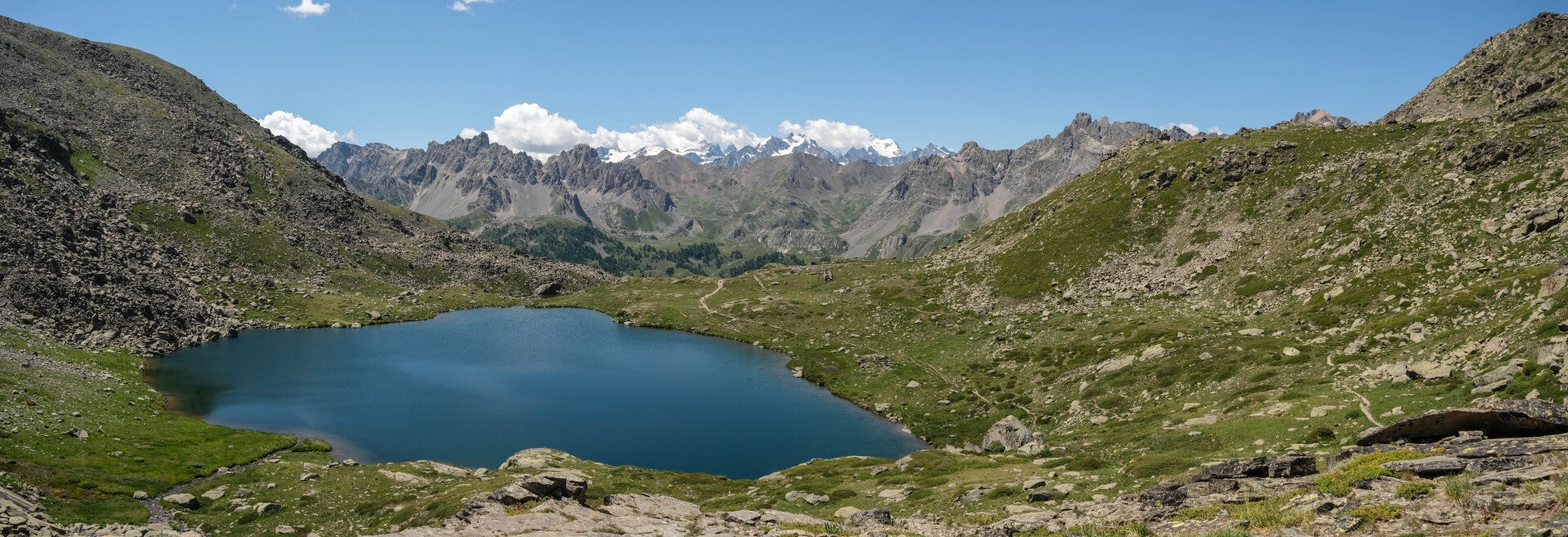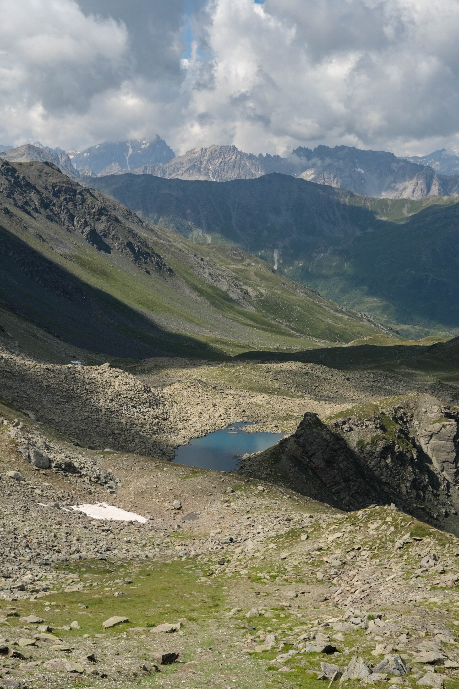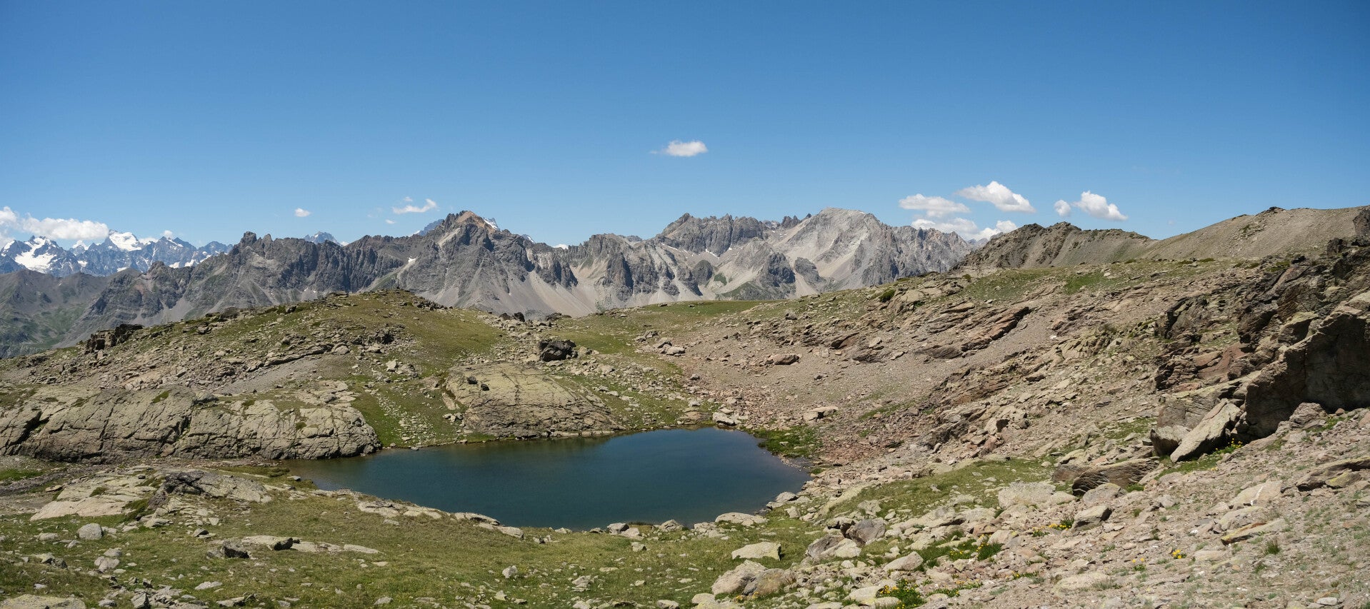 Un peu avant le Refuge de Laval, on pique de nouveau dans le même versant de la Vallée de la Clarée. On démarre ainsi une bonne grimpette vers l'objectif du jour : le Pic du Lac Blanc. Cet itinéraire, au-delà de nous faire basculer du mélézin aux vastes pierriers des Cerces, nous amènera vers une multitude de lacs. A commencer par le Lac de la Cula, premier intermédiaire de cette ascension. Une constante durant cette montée vers un presque 3000 : la vue imprenable sur le chaînon occidental des Cerces.