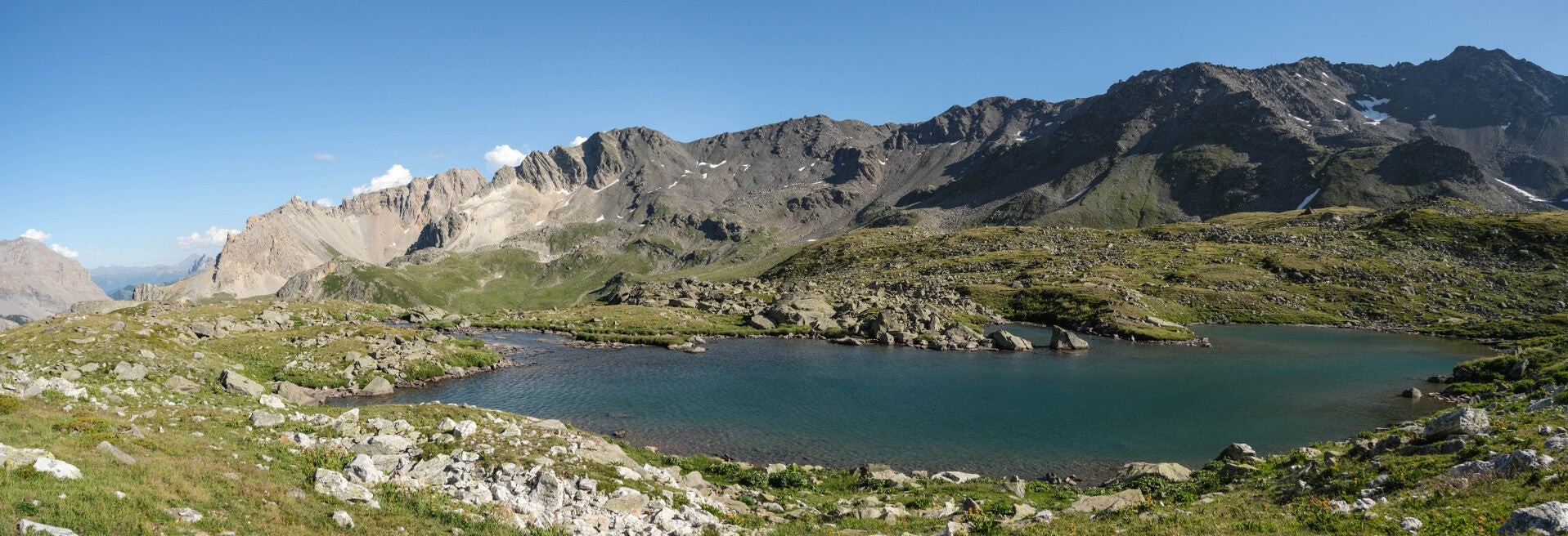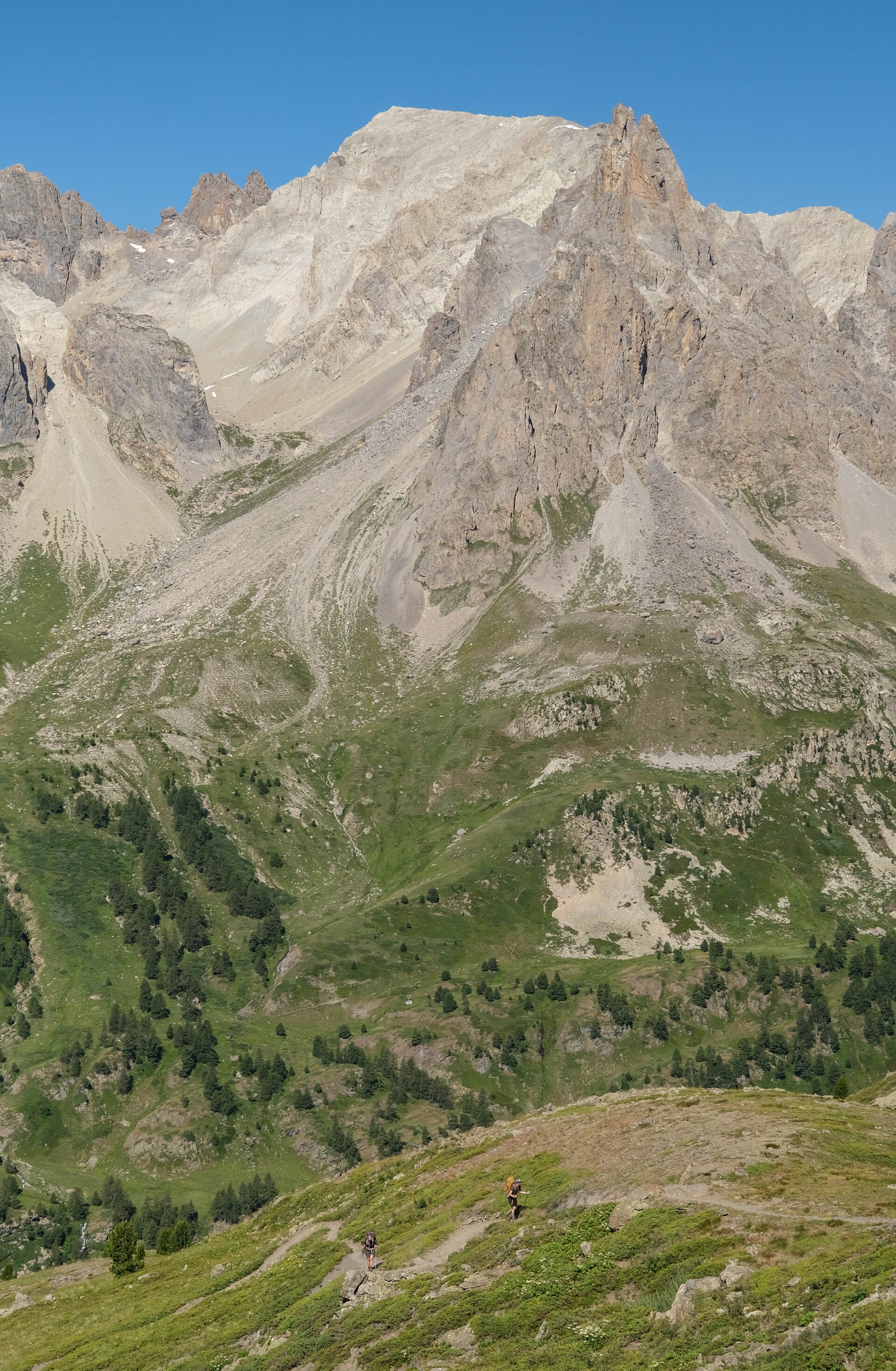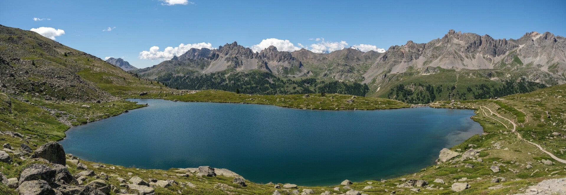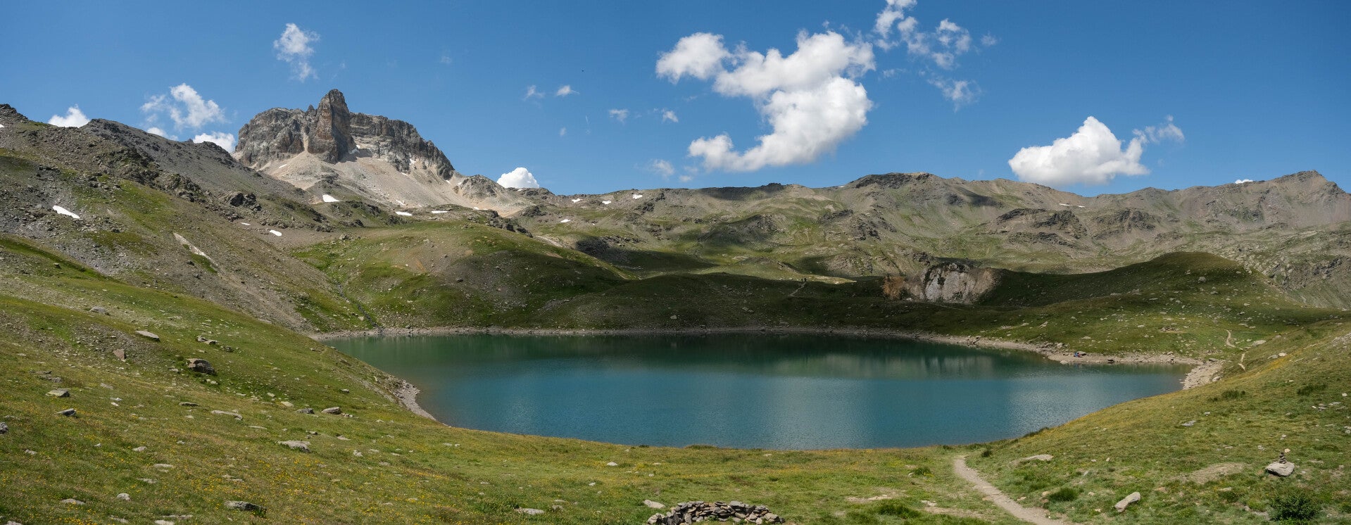 Un peu avant le Refuge de Laval, on pique de nouveau dans le même versant de la Vallée de la Clarée. On démarre ainsi une bonne grimpette vers l'objectif du jour : le Pic du Lac Blanc. Cet itinéraire, au-delà de nous faire basculer du mélézin aux vastes pierriers des Cerces, nous amènera vers une multitude de lacs. A commencer par le Lac de la Cula, premier intermédiaire de cette ascension. Une constante durant cette montée vers un presque 3000 : la vue imprenable sur le chaînon occidental des Cerces.