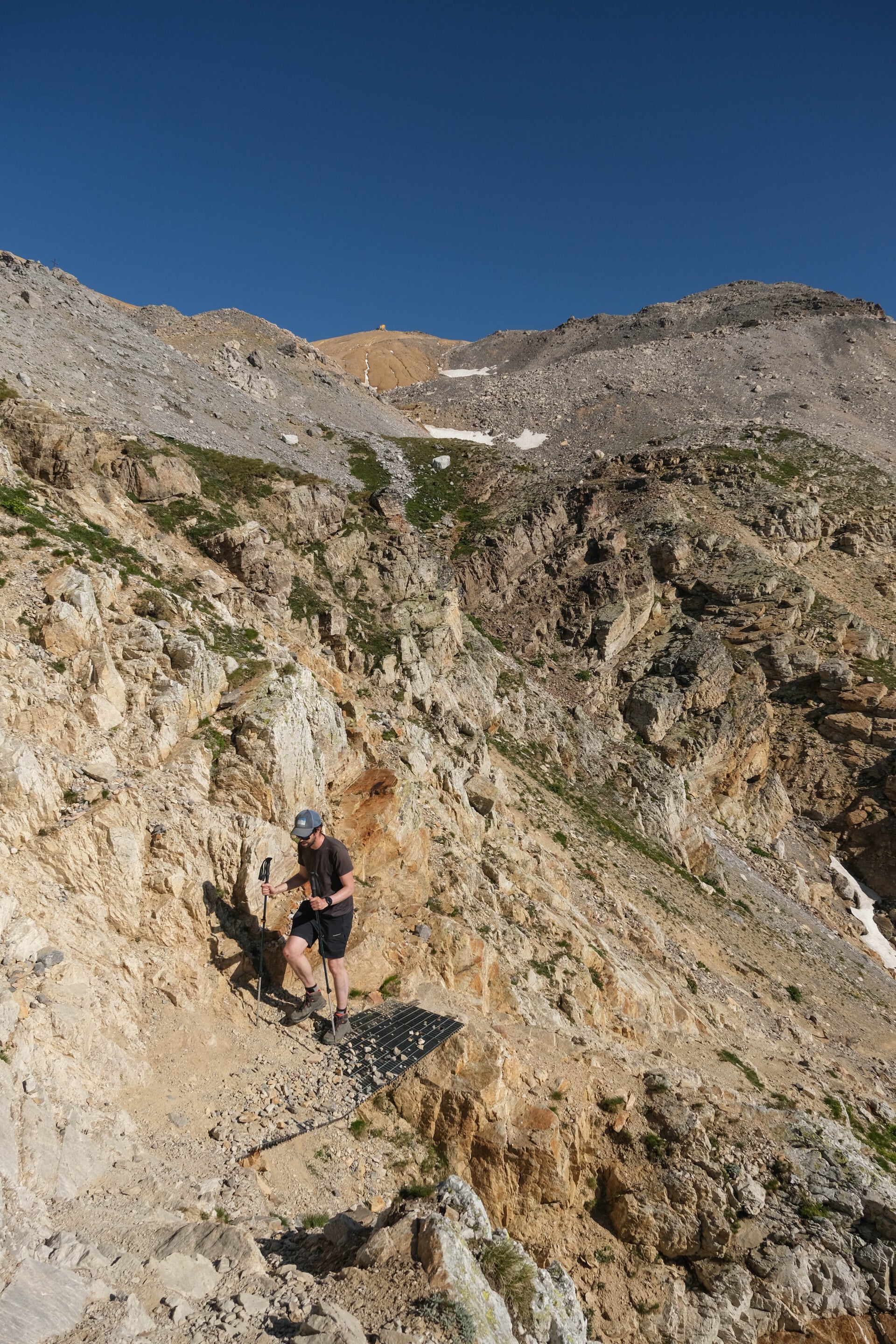 Puisqu'il s'agira d'un aller-retour, on se déleste de nos sacs de randonnée pour gravir les 400m qui séparent le col du sommet.