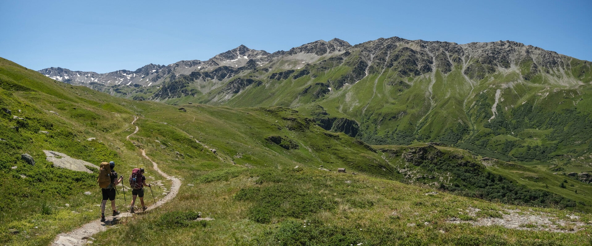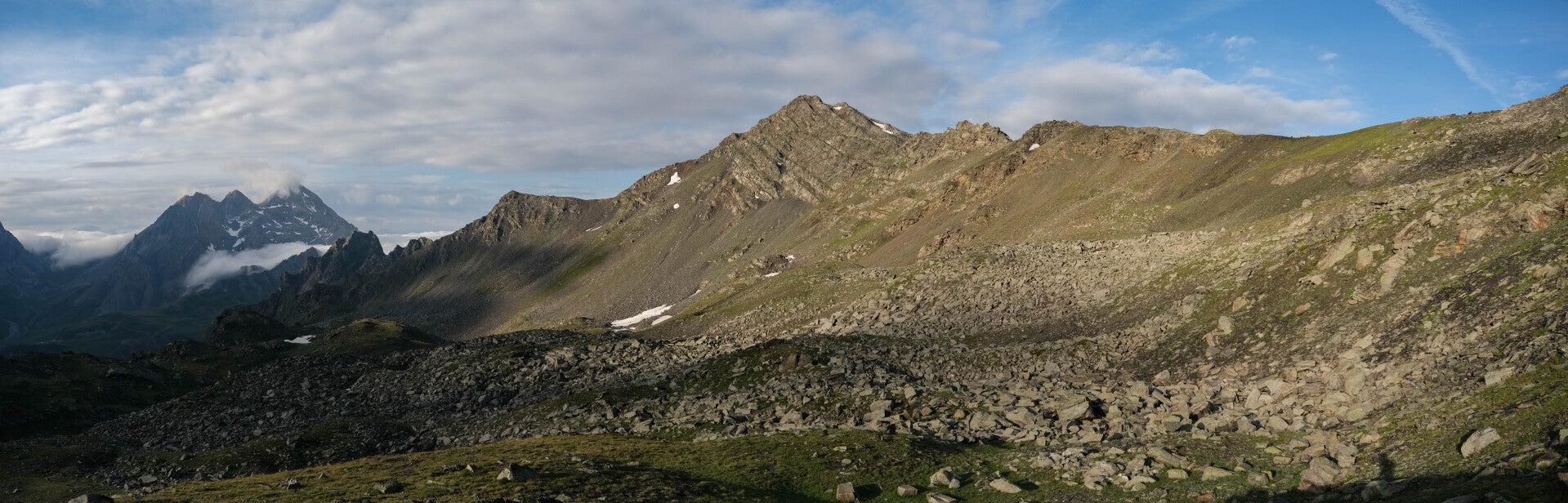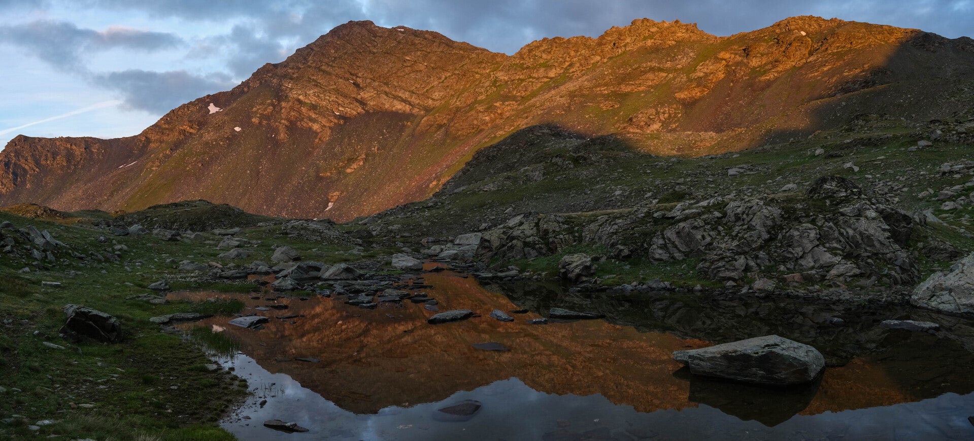 Au réveil, l'ambiance est plus mitigée que les jours précédents. L'humidité et la nébulosité sont de la partie et d'autres orages sont prévus en cours d'après-midi. On se met donc rapidement en route pour franchir les deux hauts cols de la journée. Le premier étant assez proche de notre bivouac, il sera rapidement franchi afin que nous basculions sur le Vallon de Bissorte.