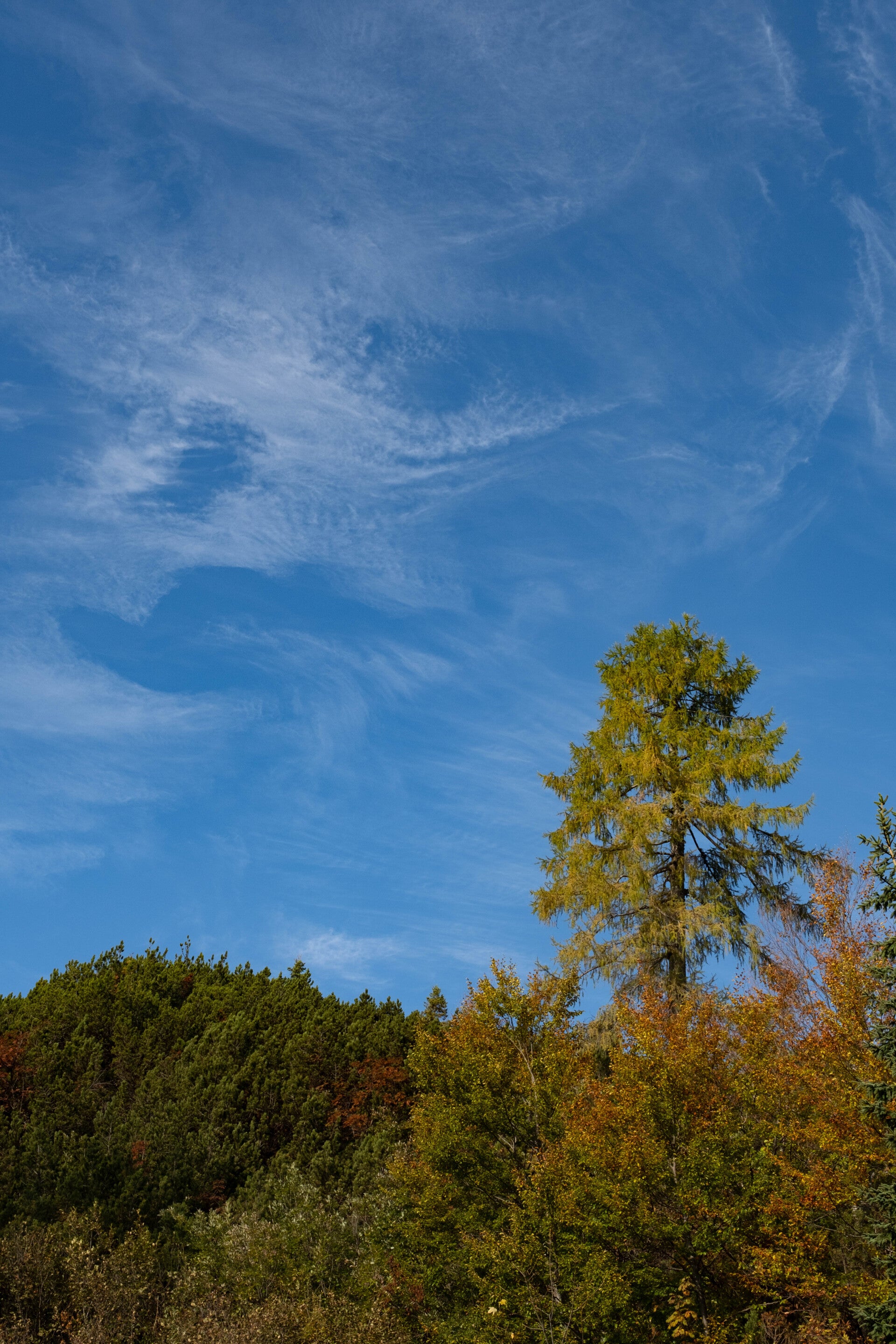 Depuis les abords du refuge, on voit bien la mue de la forêt. Ce qui est étonnant de voir ici, c'est que ce sont les mélèzes du bas qui arborent en premier leur feuillage d'automne, avant ceux situés à des altitudes légèrement supérieures.