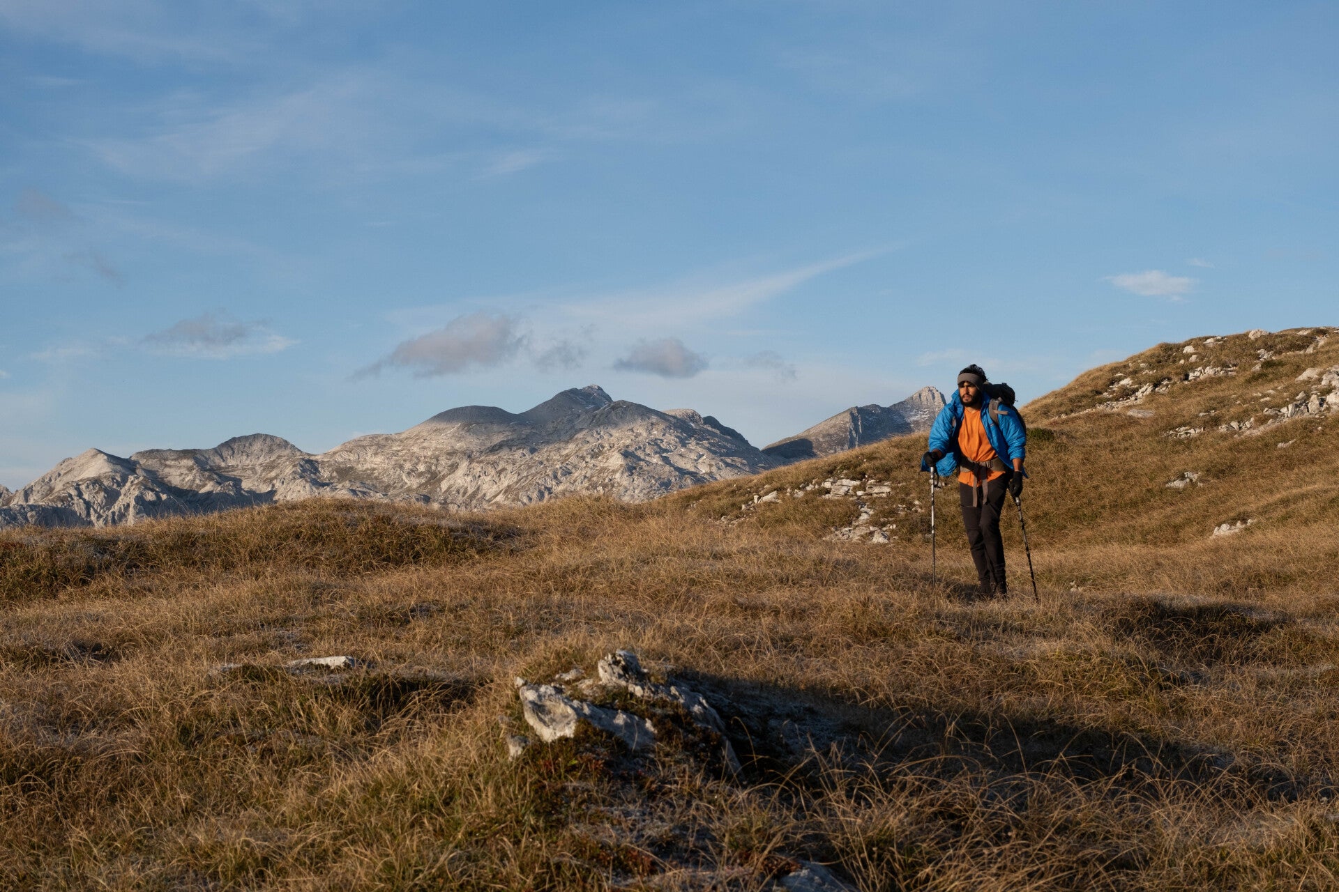 Décidément, le beau temps nous suit en Slovénie. C'est une nouvelle journée magnifique qui nous attend. Les couleurs d'automne alliées à une ambiance de fin d'été embellissent les dernières montagnes que nous gravissons. Une longue journée s'annonce avec plus de 30km de marche et plus de 2500m de dénivelés positifs. Mais c'est pour la bonne cause : le temps doit se dégrader dans la nuit et après vérification, l'unique refuge bénéficiant d'un abri d'hiver se trouve à une trentaine de kilomètres de notre position. Ce sera le dernier gros effort de notre Via Alpina.