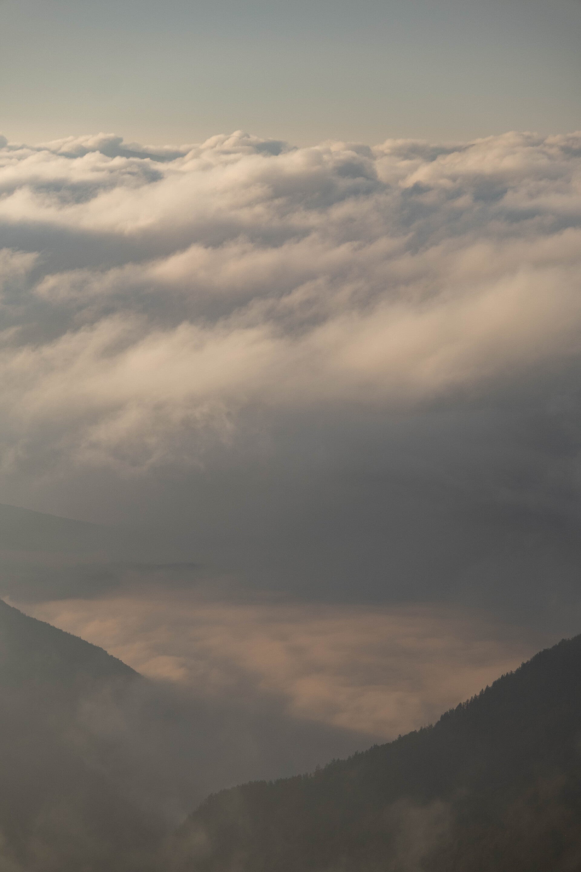 Le vent souffle sur les hauteurs, mais rien à voir avec ce que nous avons subit dans les Alpes Carniques. Le soleil perce la première et fine couche de nuages élevés mais les fonds vallées restent empêtrés dans le brouillard.