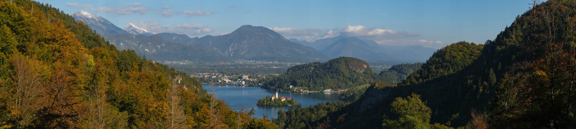 Panorama du Lac de Bled sur fond de Massif des Karavanke.