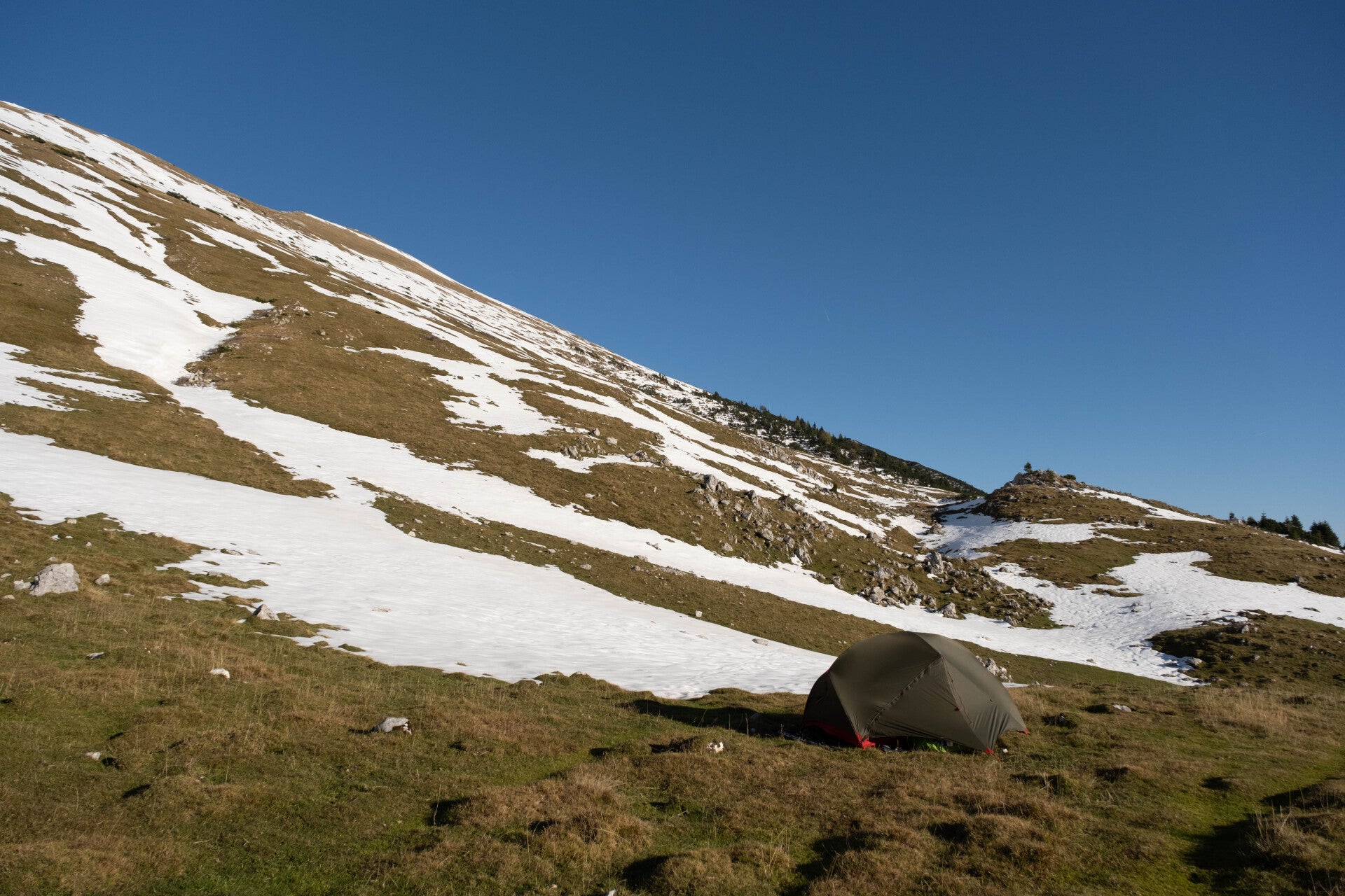 Face aux ours et pour éviter une situation à la ''The Revenant'', le bivouac est tout de même déconseillé (pas interdit !) en Slovénie, Winnie étant attiré par les odeurs de nourriture. De toute façon, au vu du froid nocturne et des différents refuges présents sur notre parcours, nous n'effectuerons qu'une seule nuit sous la tente avant d'atteindre la capitale du pays.