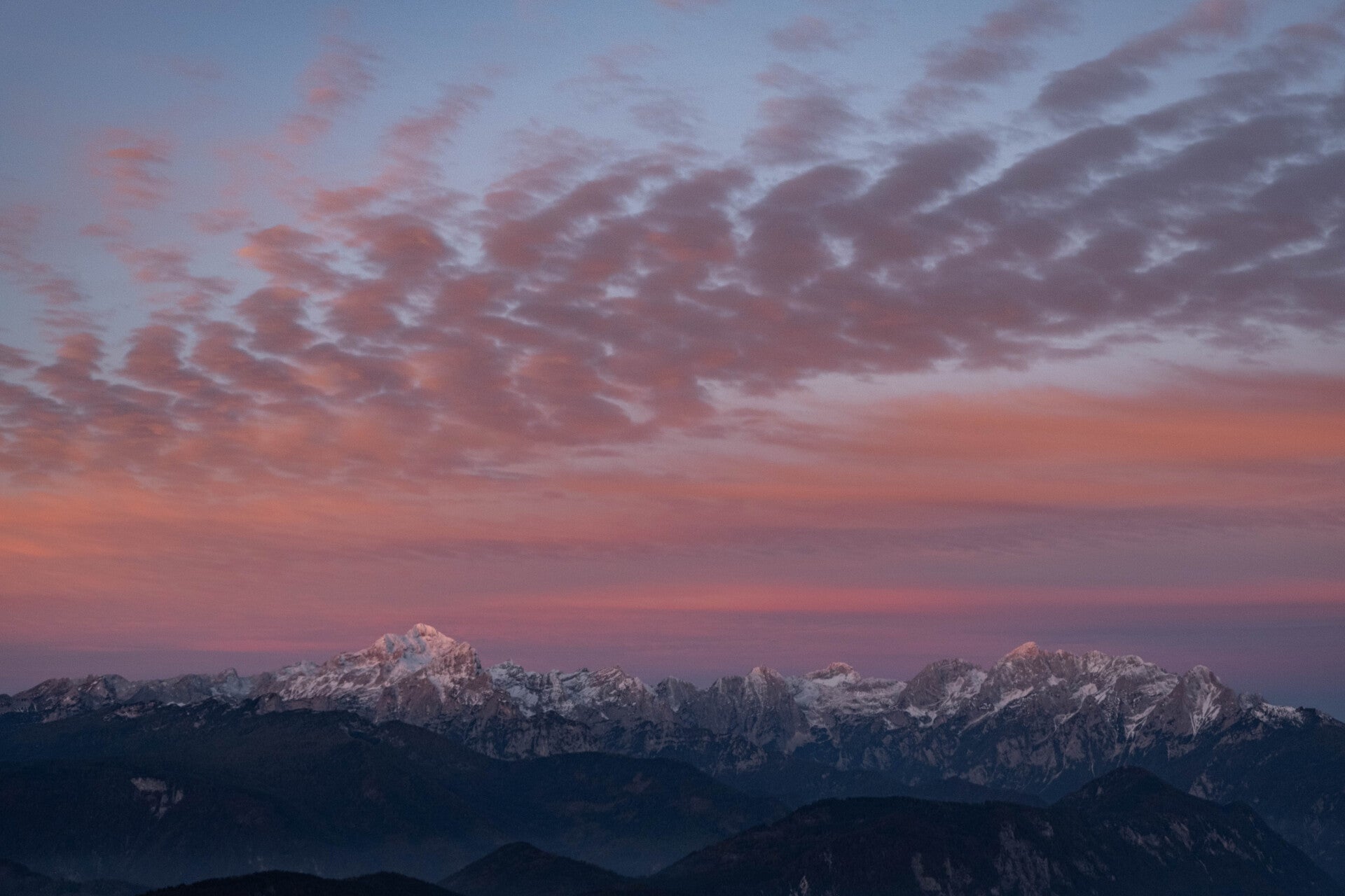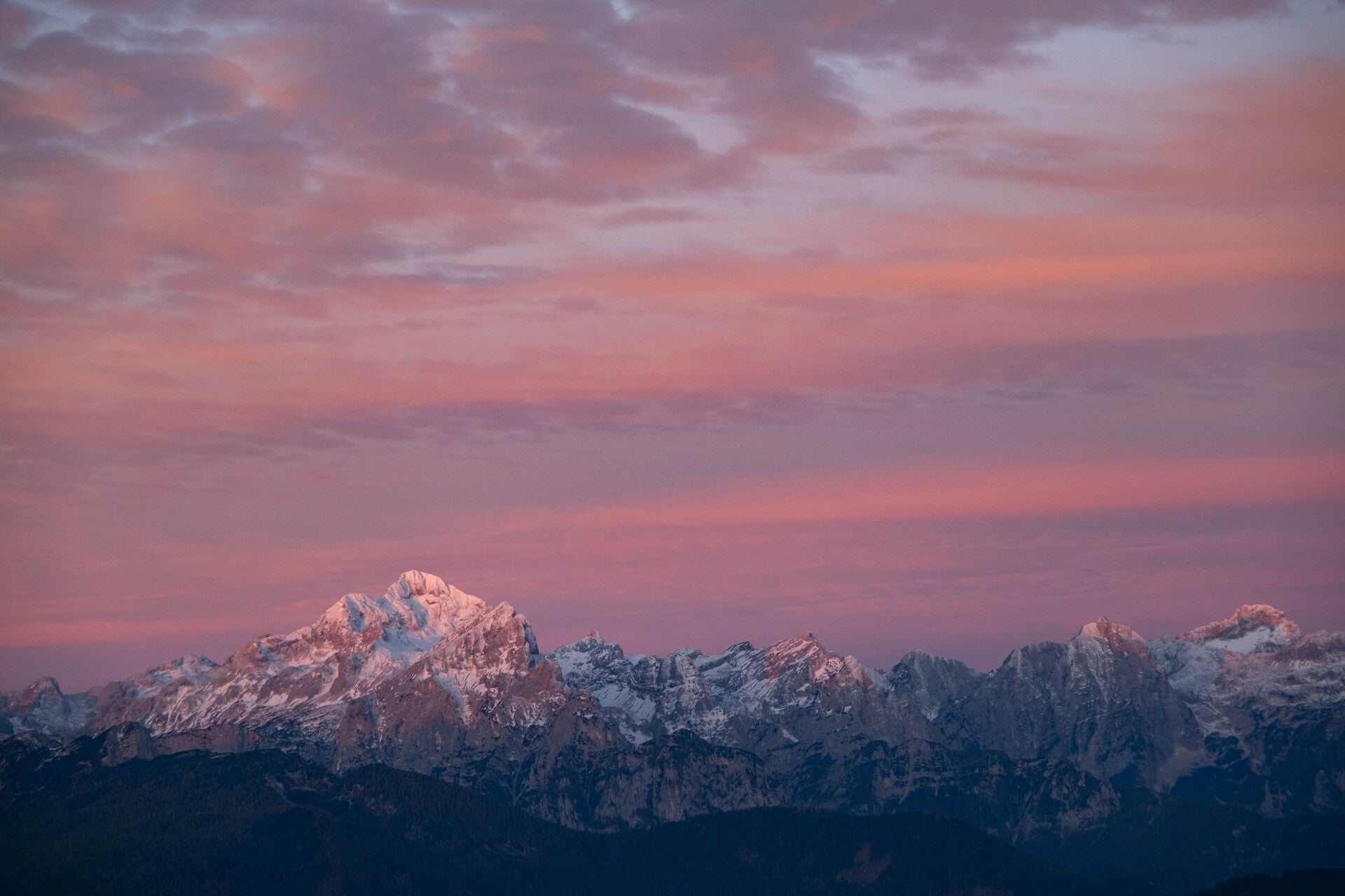 Le rose envahit le ciel du Triglav.