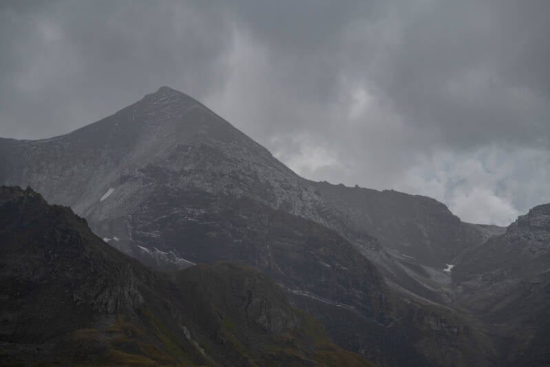 De l'autre côté du col, les montagnes du Canton des Grisons sont en proie à des averses de grêle blanchissant les cimes. Là encore, nous ne pensions pas y échapper, et pourtant.