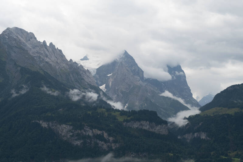 Pour le moment nous profitons d'un temps clément au-dessus de Grindelwald. Le Mönch et surtout la face Nord de l'Eiger se révélant face à nous lors de la montée au Grosse Scheidegg.