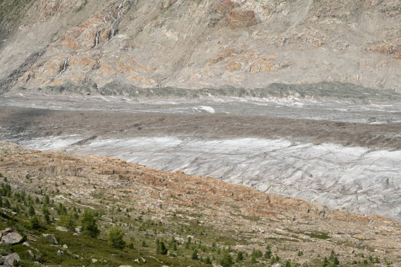 Signe des mouvements du glacier, la paroi des montagnes qui l'entourent a été polie par celui-ci. Cela montre également que malgré sa taille, le Glacier d'Aletsch est lui aussi victime du réchauffement climatique. Ce site est par ailleurs classé au Patrimoine mondial de l'UNESCO.
