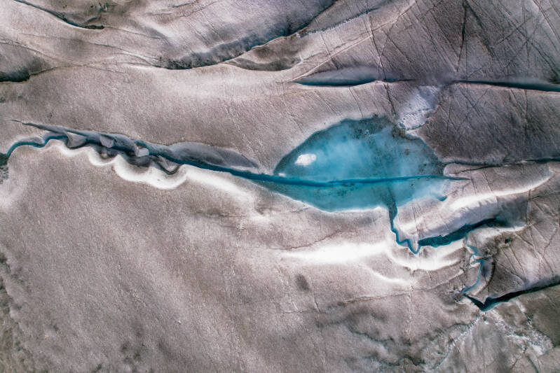 Même si la chaleur estivale est au rendez-vous ce jour-là. En se rapprochant du glacier, l'air frais voire froid se ressent grandement. C'est donc avec la chair de poule que nous quitterons la surface du glacier pour aller poser notre bivouac près du Märjelensee. Ainsi nous allons profiter de cet endroit sans les flots de touristes qui empruntent eux aussi le sentier panoramique. Nous reviendrons dans la soirée près du glacier pour une séance photo un peu spéciale.