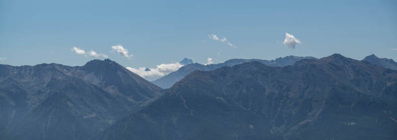 L'arc alpin continue sa route vers l'Est. Des montagnes s'enchainent à perte de vue au-dessus des plaines de l'Italie du Nord.