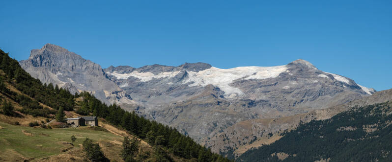 En plongeant vers le Glacier de Rochemelon, on repasse en France.