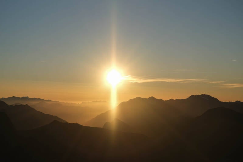 Bien que faisable en une seule journée, dormir au sommet de cette montagne pimente quelque peu l'expédition. On peut ainsi profiter d'un exceptionnel coucher et un lever de soleil sur les Alpes et l'Italie du Nord. Et vous pourrez, comme nous peut-être, effectuer votre première nuit à plus de 3500m d'altitude. Uniquement relier au reste de l'humanité par le bourdonnement des vallées.