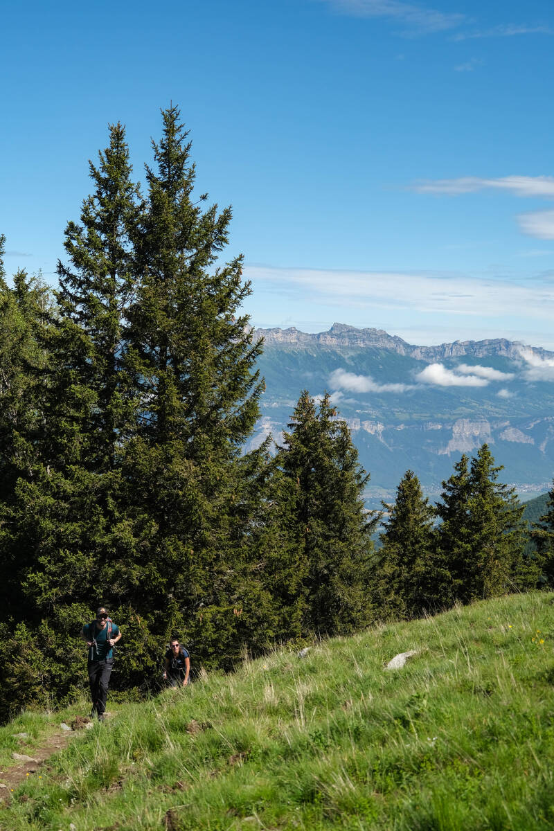 Une fois le Lac du Crozet passé, on descend progressivement vers la forêt. On évolue tout d'abord dans des gradins mi-herbeux, mi-rocheux tout en contemplant le Massif de la Chartreuse et la profonde vallée du Grésivaudan.