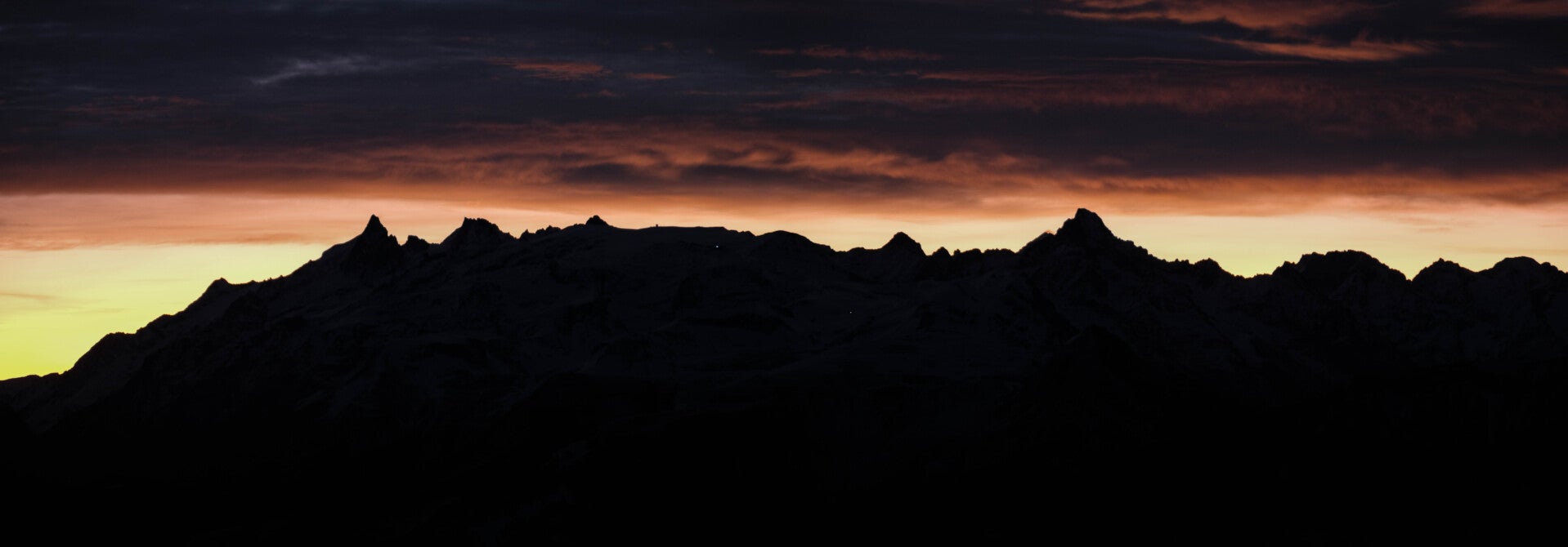 Après avoir pu déguster de magnifiques conserves réchauffées au feu de bois, nous nous apprêtons à sombrer dans nos duvets. Mais avant, un petit tour dehors pour voir les Alpes éclairées non pas par le soleil mais par la Lune cette fois-ci.
