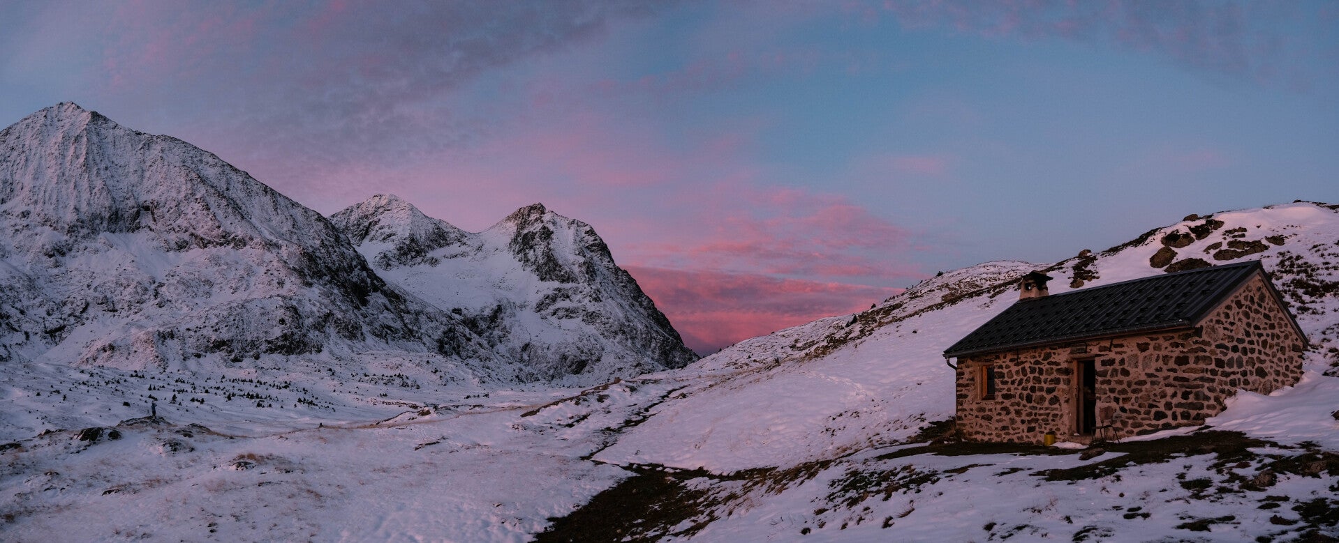 Puis, alors que l'Alpe d'Huez s'illumine, la Cabane de la Jasse fait son apparition dans l'alpage.