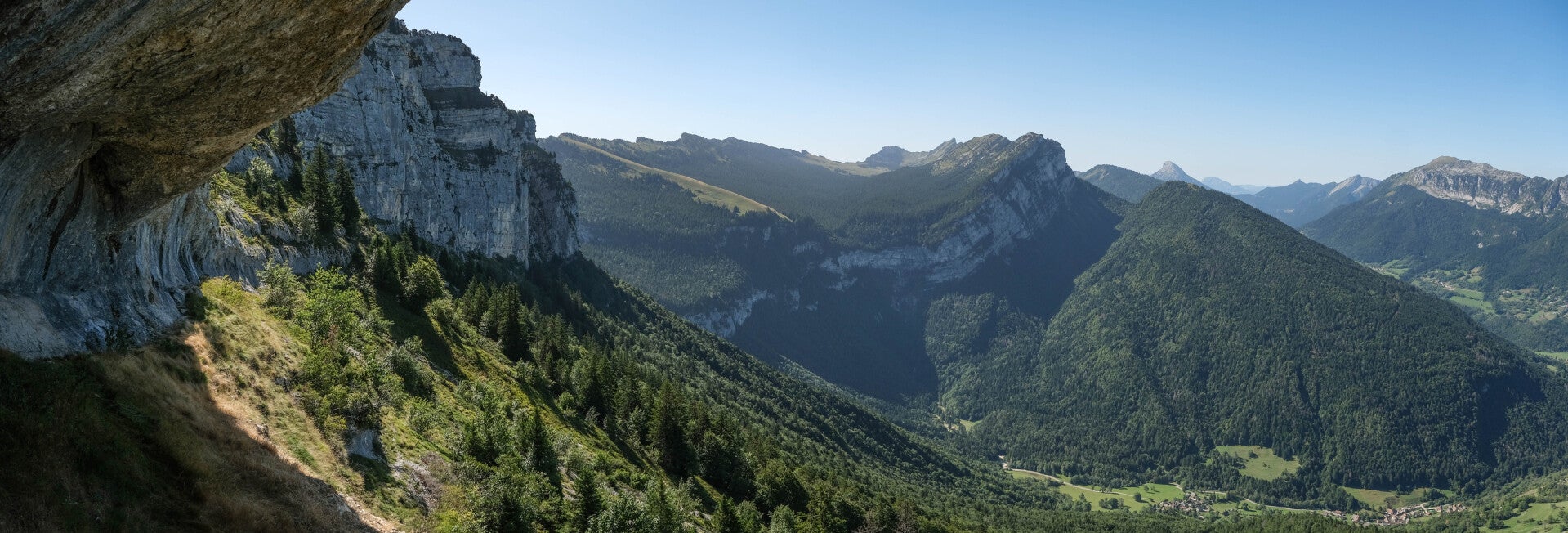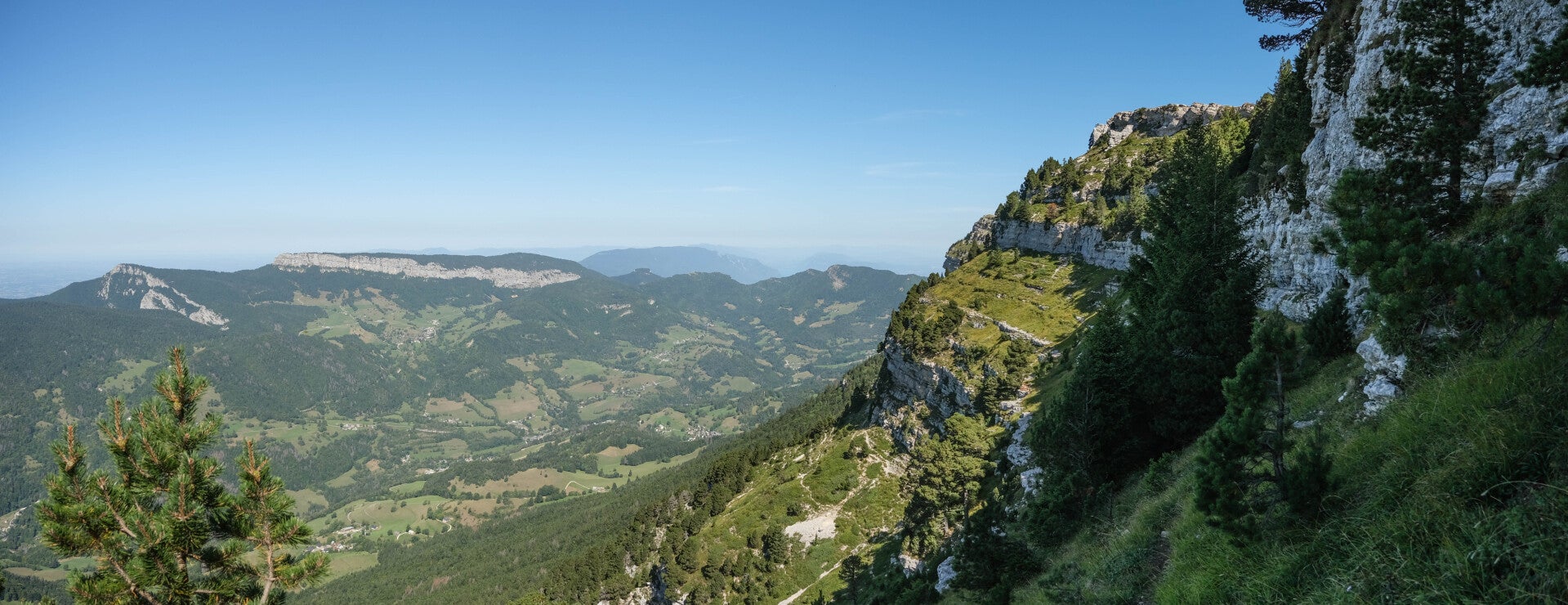 On profite aussi d'un magnifique belvédère sur les Hauts de Chartreuse. On remarque particulièrement bien la finesse de cet enchainement montagneux mais également son caractère grandiose avec de splendides parois calcaires et de denses forêts de conifères entrecoupées de délicates zones alpestres.