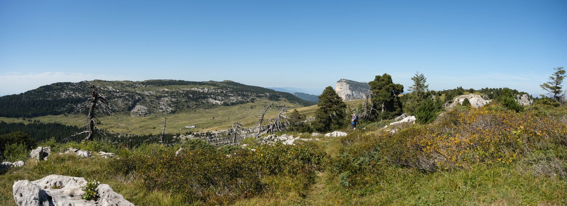 Belvèdère sur les Hauts de Chartreuse depuis le point 1830 des cartes IGN (cul-de-sac pour la suite de la progression vers l'Alpette des Dames que l'on devine au loin).