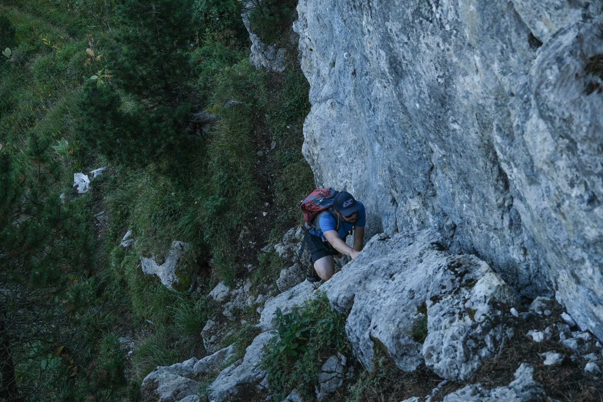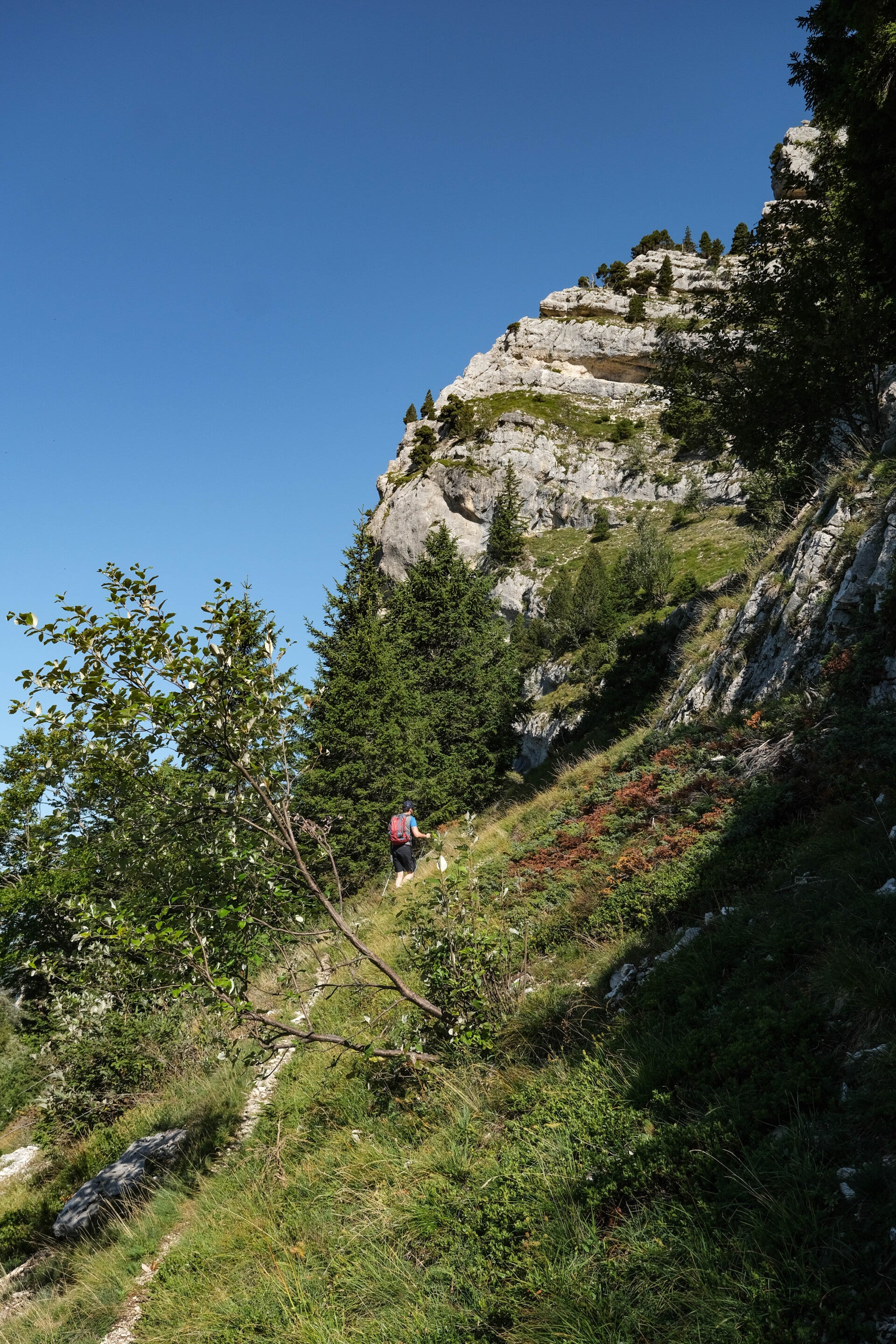 Après le Pas de la Rousse, le sentier est de plus en plus discret. Son cheminement est contre-intuitif puisqu'on est constamment poussé à tenter de relier l'arête pour rester sur son fil, mais il n'en est rien. Il faut autant que faire se peut rester sur le versant Ouest de la montagne, quelques dizaines de mètres en contrebas de l'arête. Si vous filez vers l'arête, vous vous retrouverez vers des passages infranchissables soit du fait de la verticalité soit du fait de la végétation et le demi tour sera inévitable. Une bonne lecture des cartes ou une trace GPX à disposition peuvent permettre de divaguer plus tranquillement sur ces arêtes.