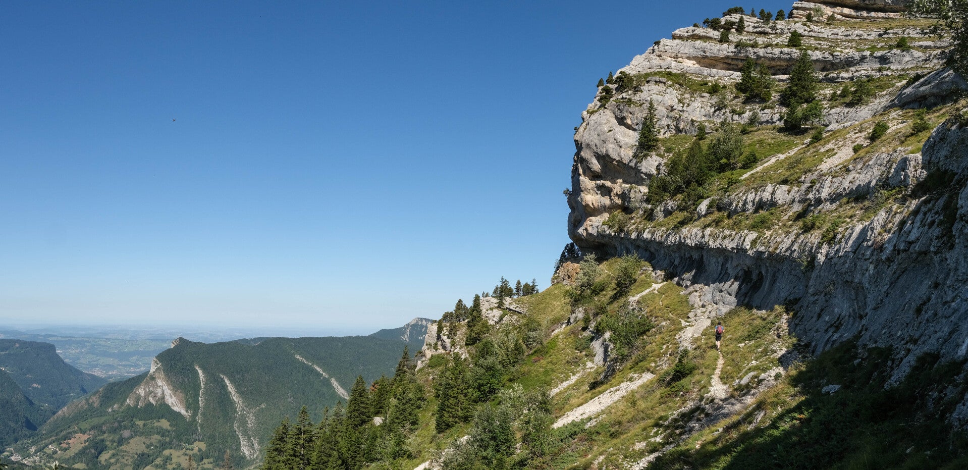 On bifurque donc sur le sangle du Pinet qui part vers le Nord. Sur plus de 2km, on traversera les nombreux cirques qui composent la face Ouest du Pinet avec une vue imprenable sur la Chartreuse et les plaines iséroises.