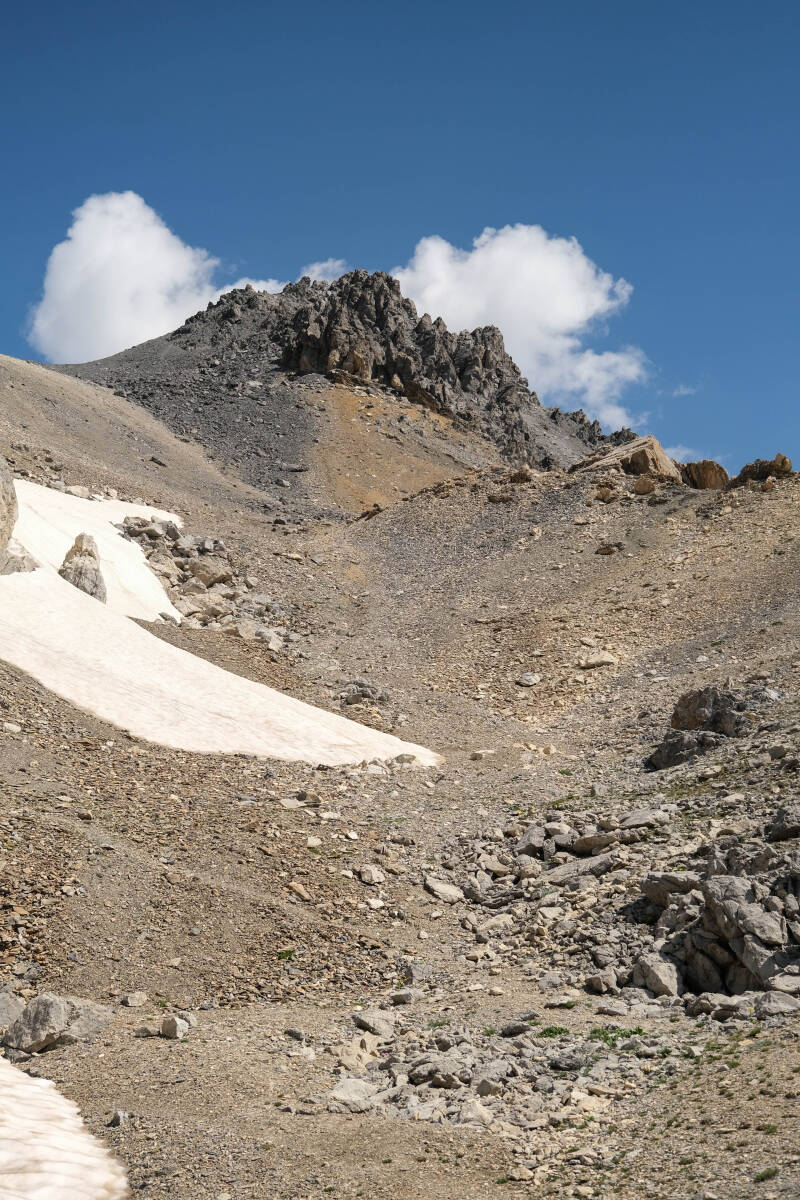 Passé 2500m, le Torrent des Houerts se tait et disparait. Laissant place par la même occasion à un univers intégralement minéral, typique des hautes montagnes ubayennes.