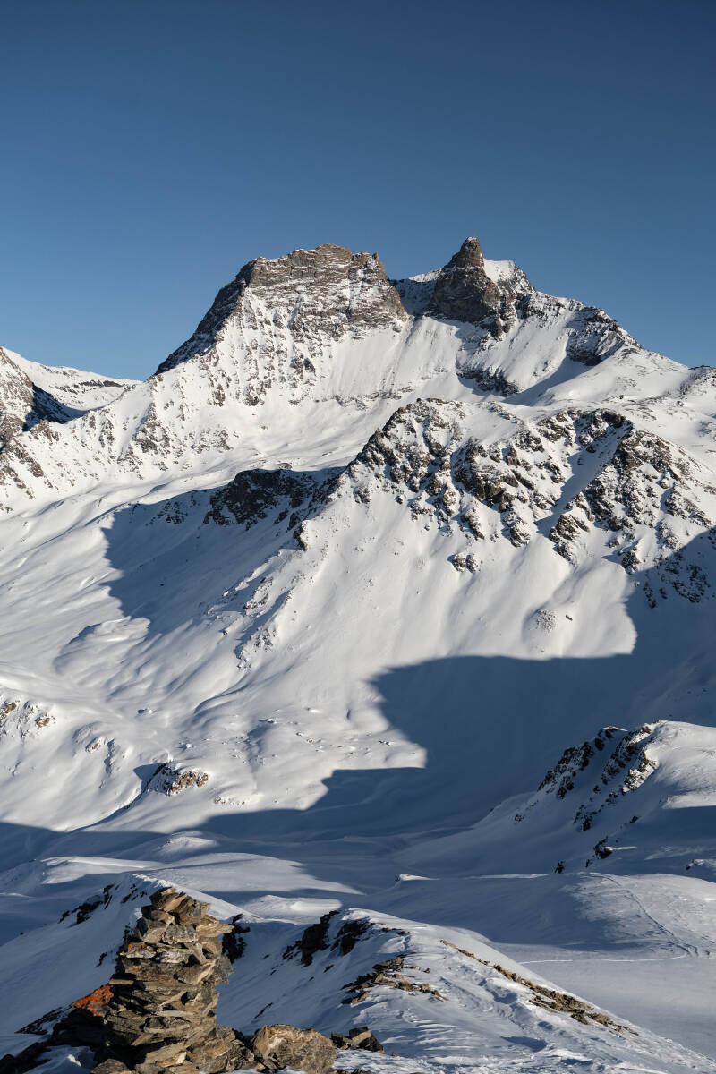 Vous l'aurez compris , les sauvages que nous sommes s'attèleront à arpenter la zone en période hivernale. Attirés non seulement par la tranquillité que cette saison confère au Parc National de la Vanoise mais également à la beauté du cadre montagnard. Parce que oui, si cette zone est si fréquentée, c'est bien parce que le panorama est l'un des plus beaux du département. On se situe au centre du Parc National de la Vanoise, aux pieds des géants du coin qui dépassent allègrement les 3000m d'altitude et on fait face aux langues glaciaires qui dégringolent de la calotte du massif. Bref, le paysage de haute montagne à l'état pur. Mais de notre côté, les contrastes seront moins prégnants. La neige, bien qu'en faible quantité en cet hiver 2023, recouvre ces pentes. Ainsi alpages, pierriers, glaciers, lacs revêtent tous la même parure : celui du blanc immaculé de l'hiver alpin.