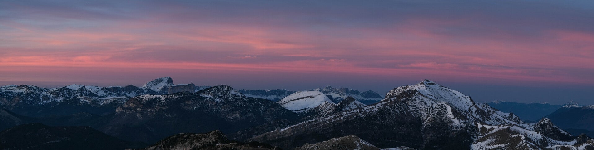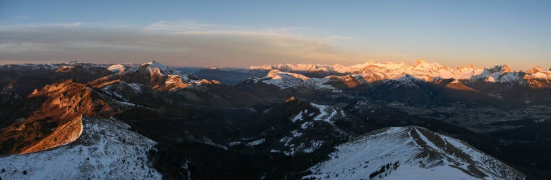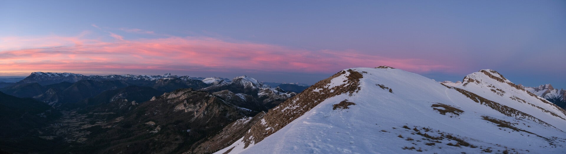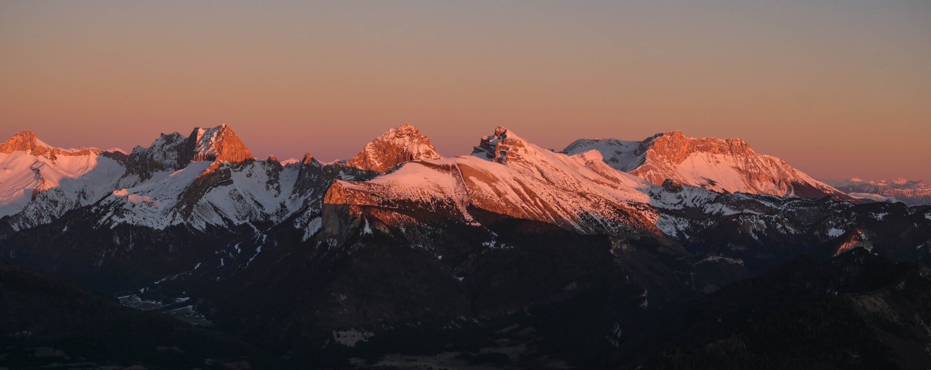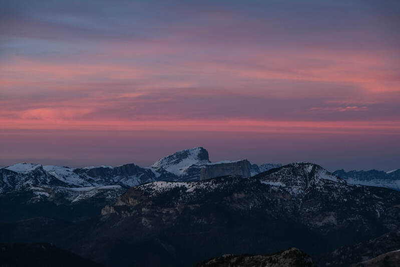 Avant que la nuit ne l'emporte, la totalité de la chaîne du Dévoluy rosit.