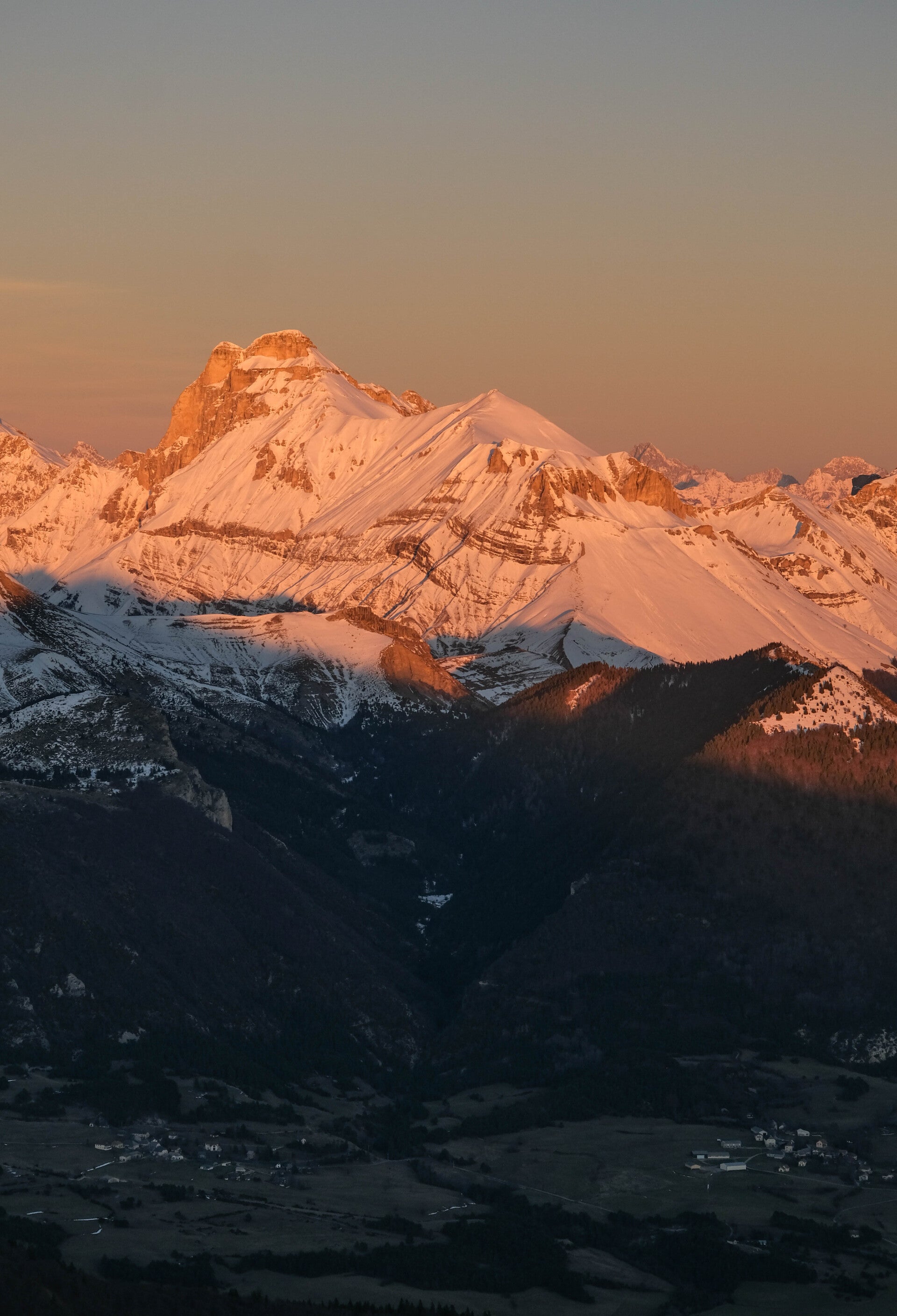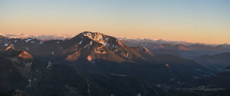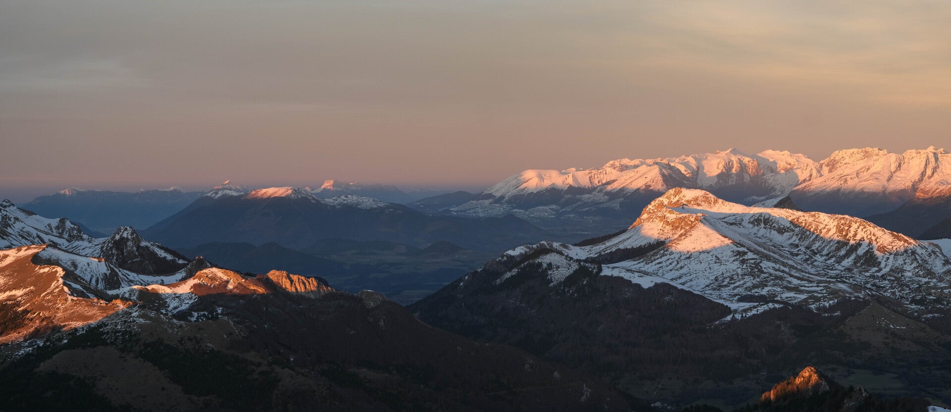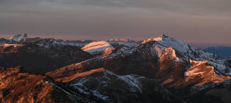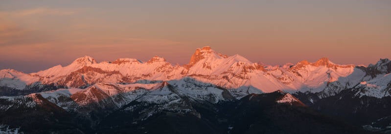 Avant que la nuit ne l'emporte, la totalité de la chaîne du Dévoluy rosit.