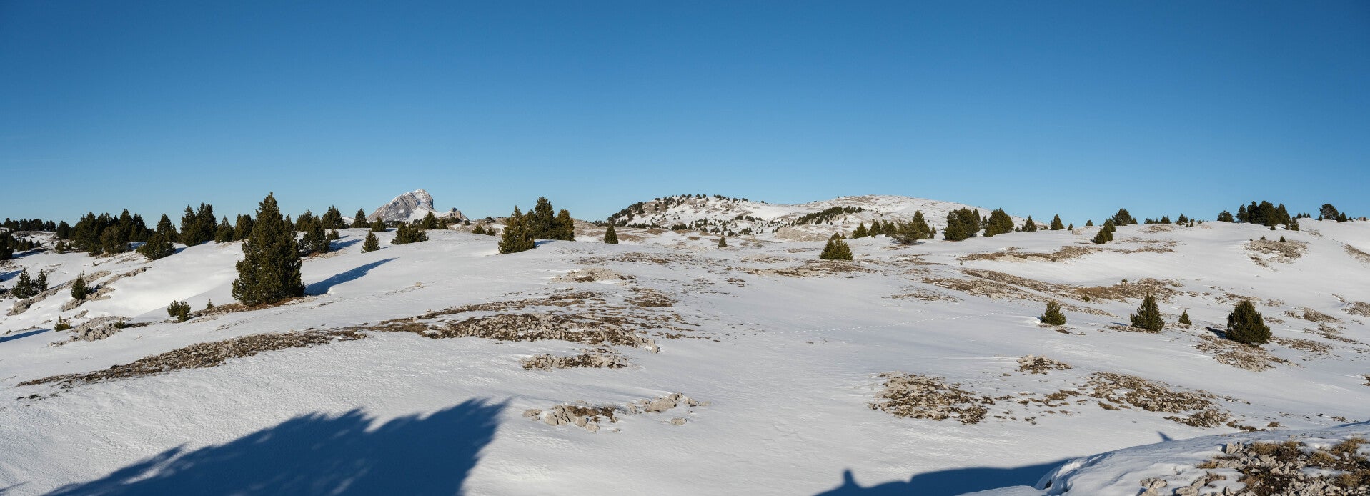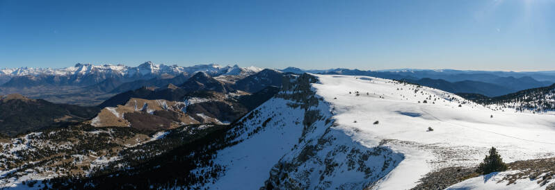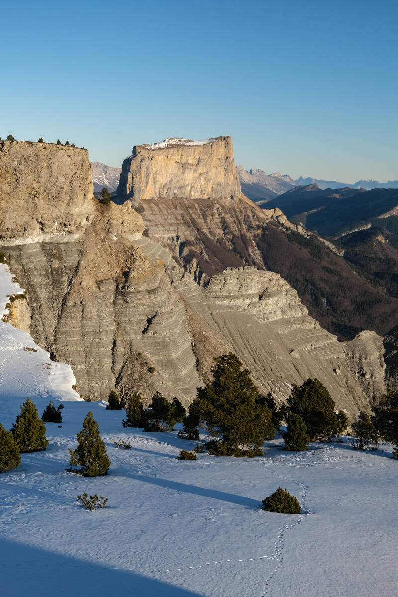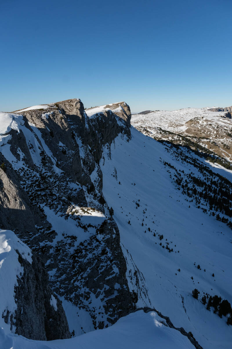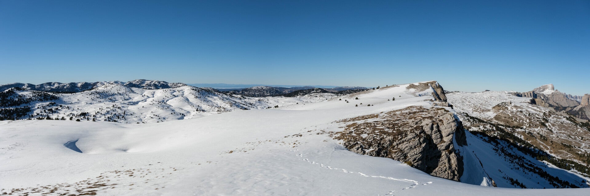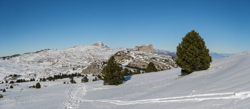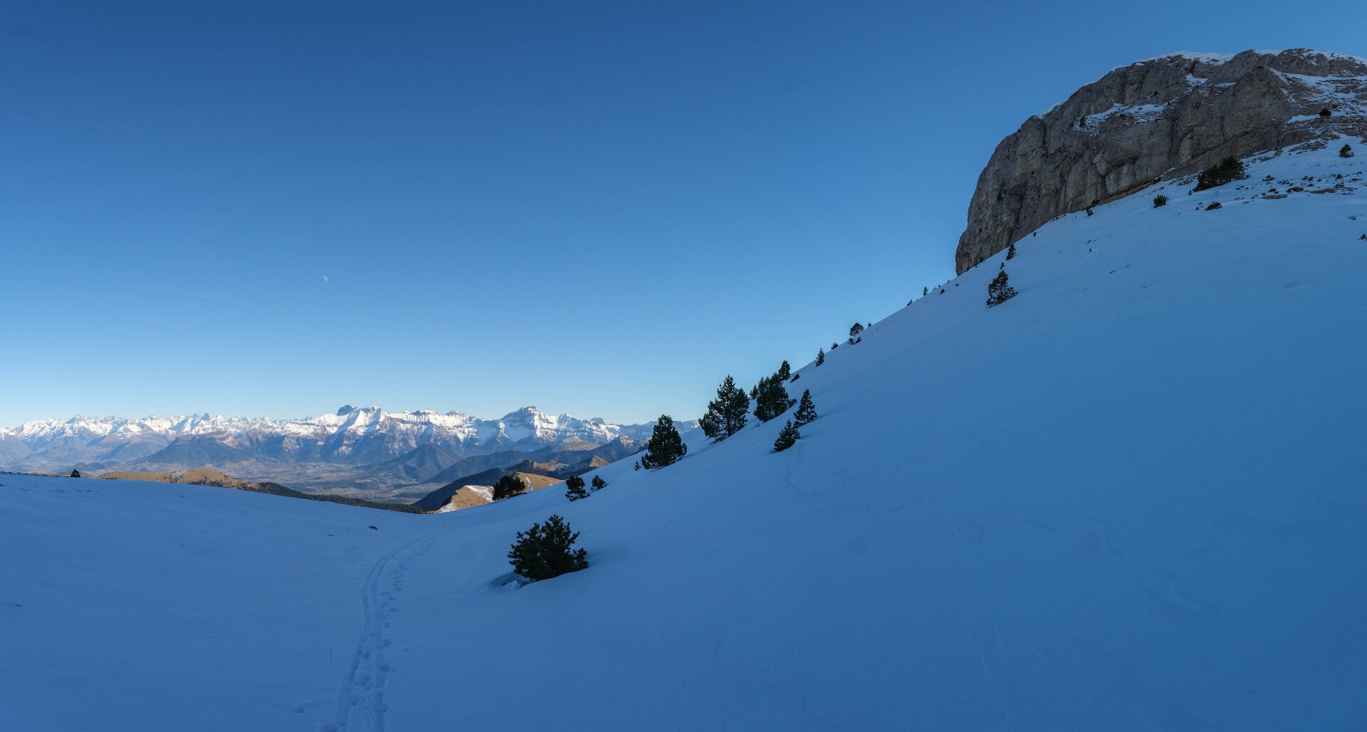 De ce versant, l'accès au Sommet de la Montagnette est probablement le plus esthétique et le plus sauvage, mais également le plus simple. Ajoutez à cela quelques cimes secondaires pour contempler ce sommet sous ses différentes formes et appréhender la diversité de cette extrémité du Vercors dans une solitude hivernale des plus totales.