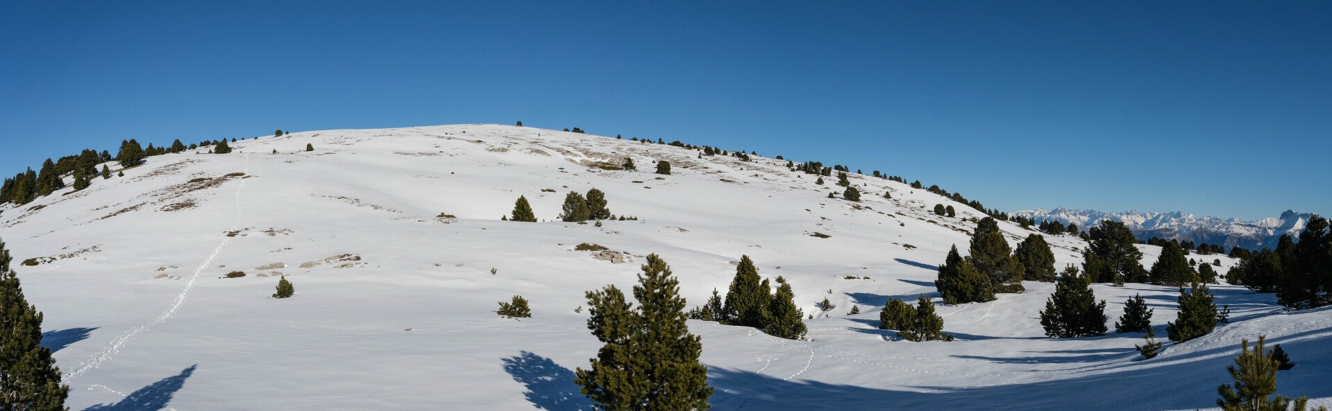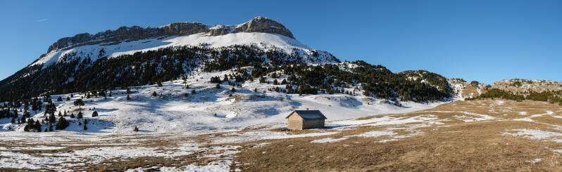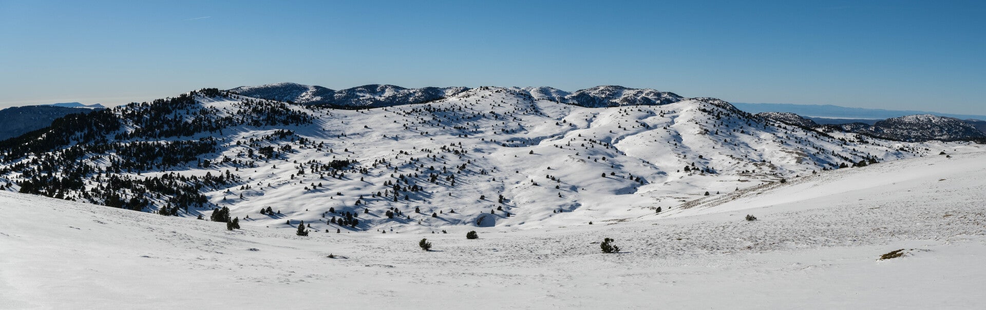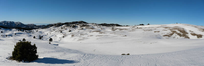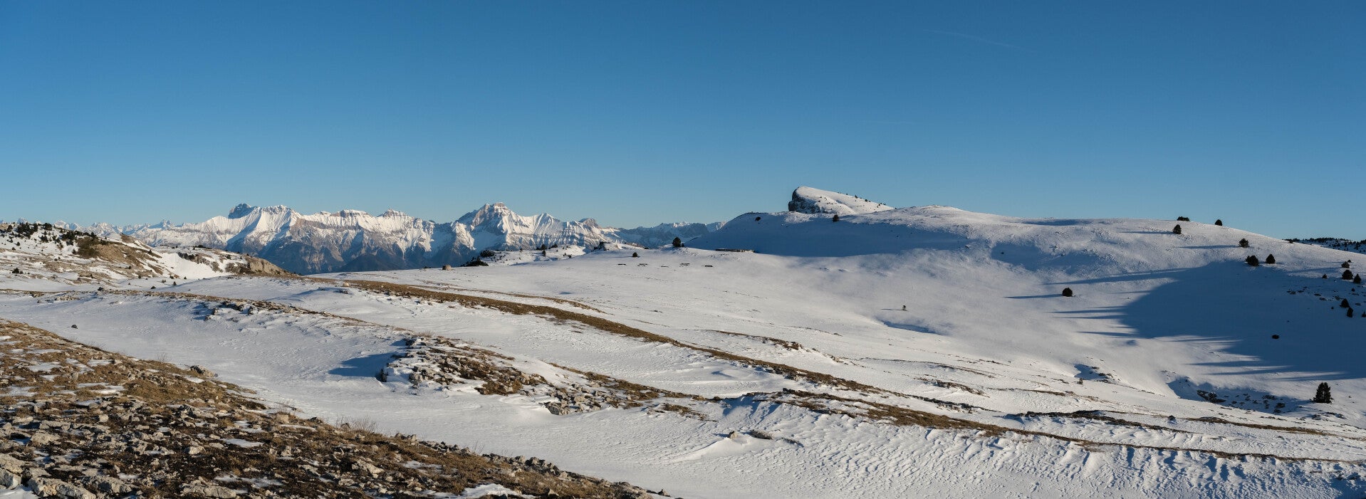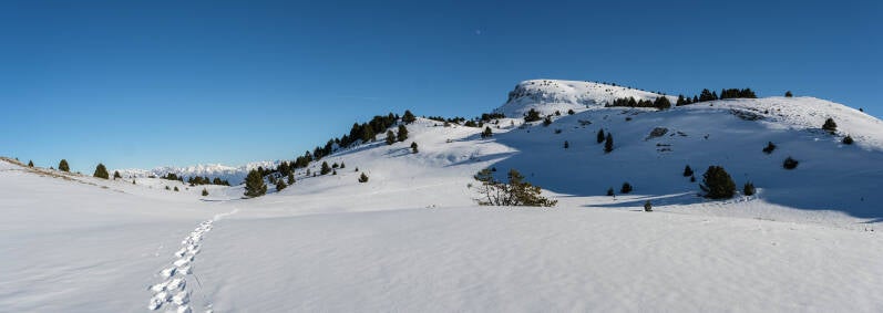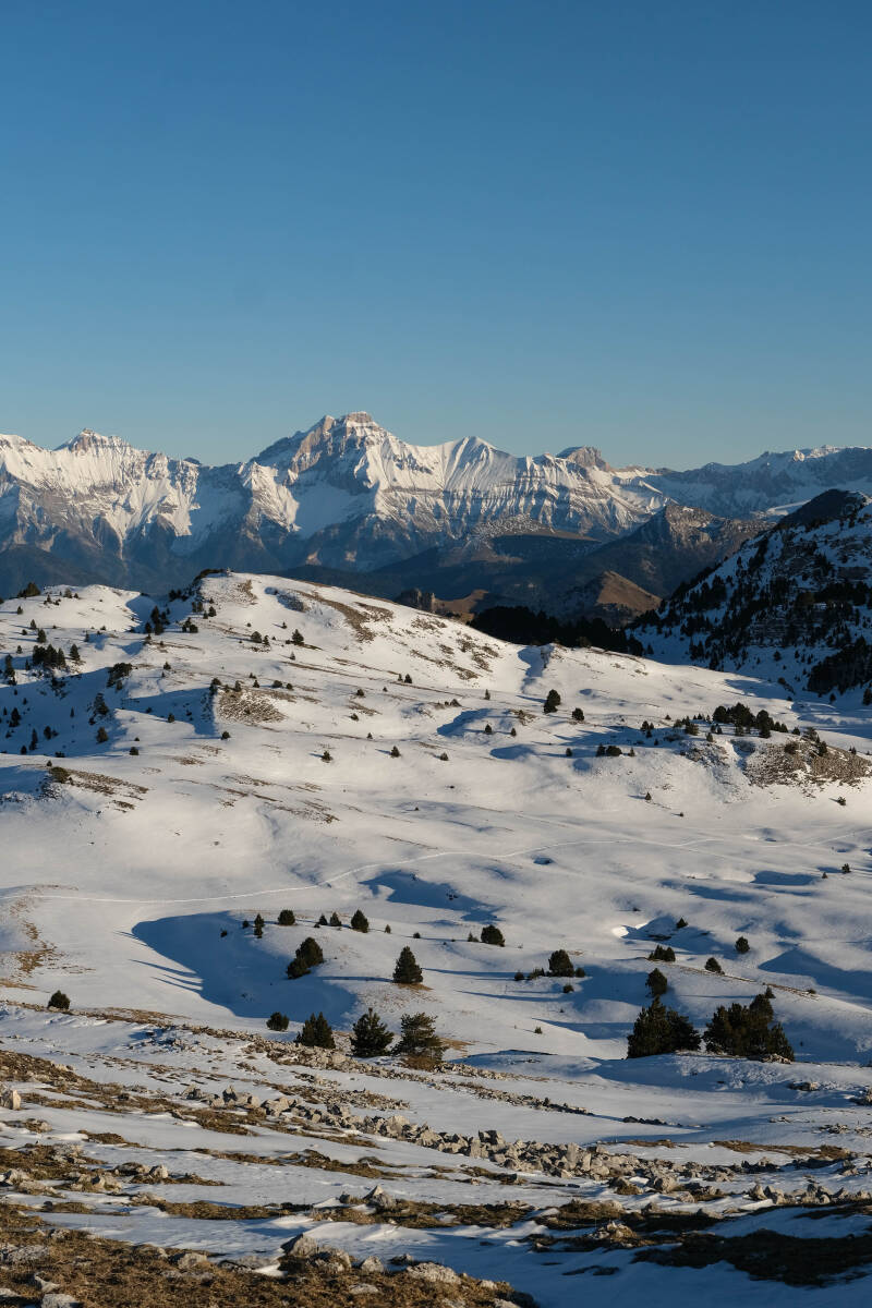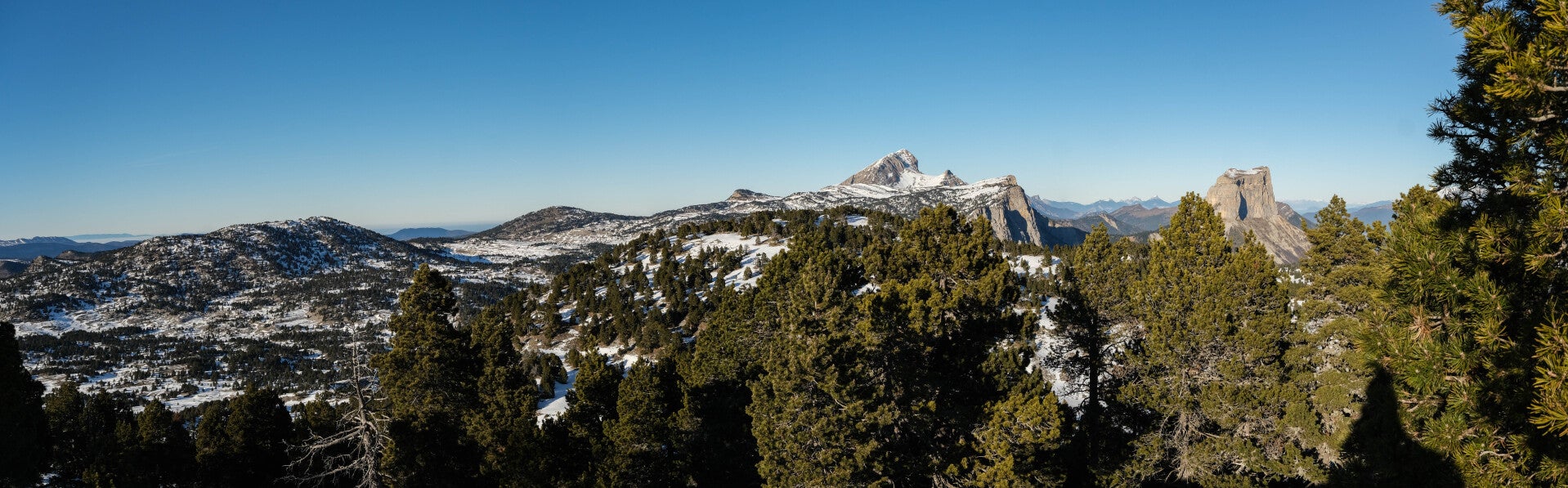 De ce versant, l'accès au Sommet de la Montagnette est probablement le plus esthétique et le plus sauvage, mais également le plus simple. Ajoutez à cela quelques cimes secondaires pour contempler ce sommet sous ses différentes formes et appréhender la diversité de cette extrémité du Vercors dans une solitude hivernale des plus totales.