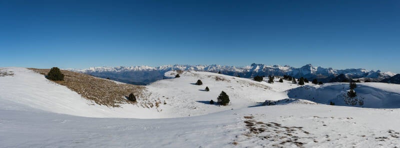 On n'oublie pas le secteur Sud avec le Trièves et le Haut-Buëch dominés par les cimes dévoluardes et le Diois.