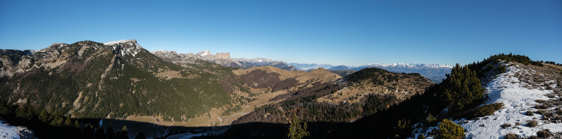 Panorama depuis le Tête de Praorzel 1691m, entre Vallon de Combau et Chichilianne.