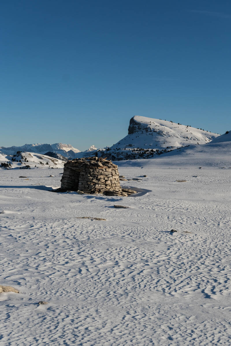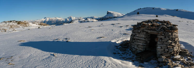 Au milieu des alpages, totalement en dehors des itinéraires reliant les différents points principaux des Hauts Plateaux, on passe aux abords d'étranges structures de pierres. A mi-chemin entre le cairn et l'abri, il s'agit d'une borie. Ce terme d'origine provençale désigne un petit abri en pierre sèche permettant aux bergers d'autrefois soit de s'abriter soit d'y entreposer du matériel pour l'estive. Construit entre le XVIIIème et le XIXème, ces bories sont notamment utilisés dans les Alpes du Sud, dans des régions où les vents peuvent s'avérer tempétueux.