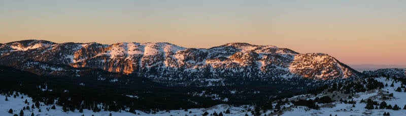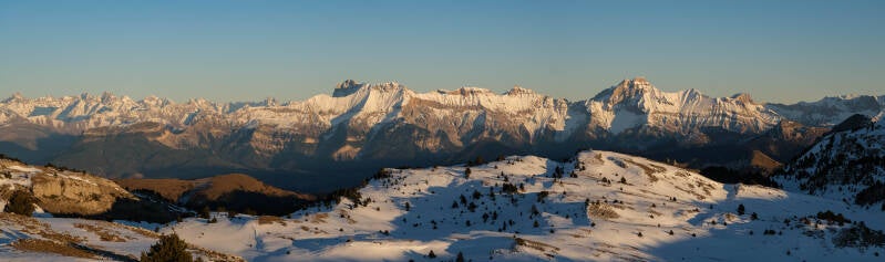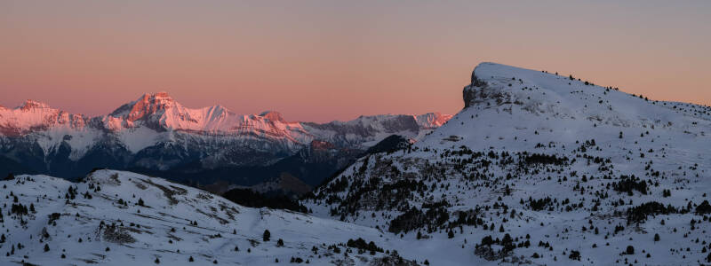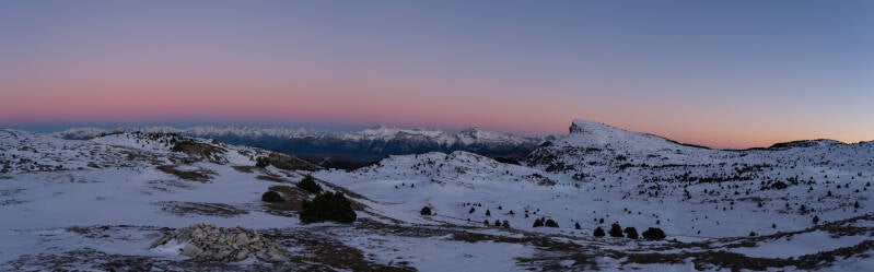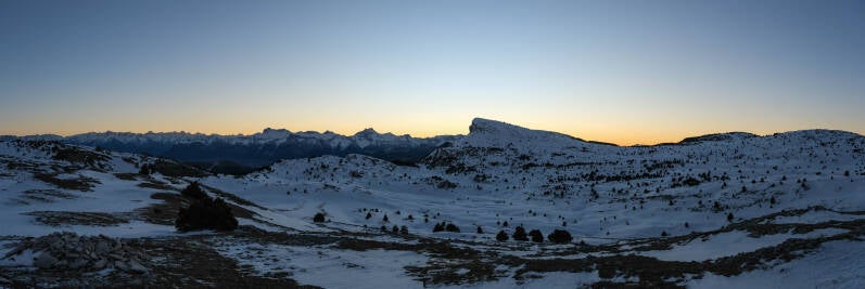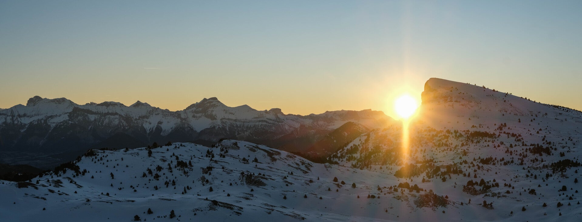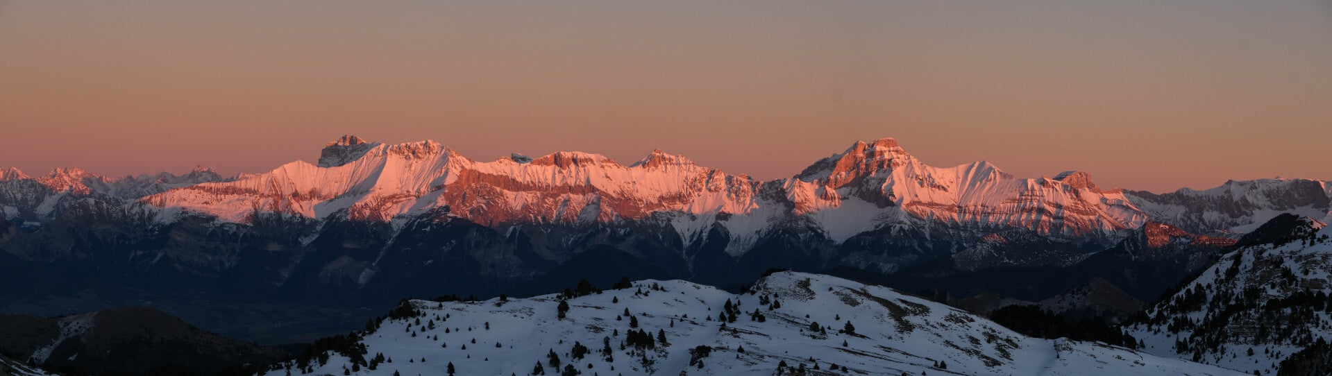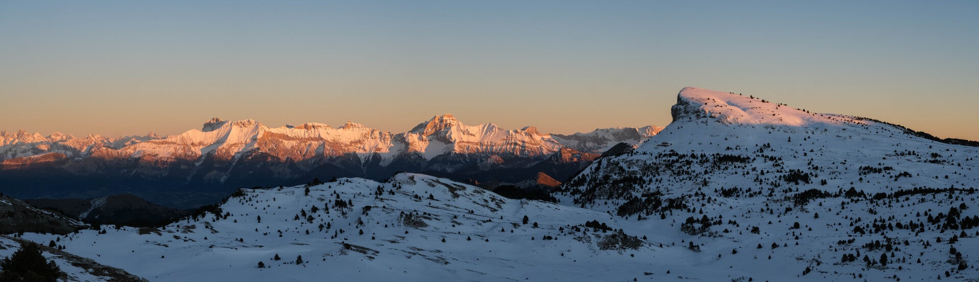 Lever de soleil sur la Montagne du Glandasse et le Roc de Peyrolle.